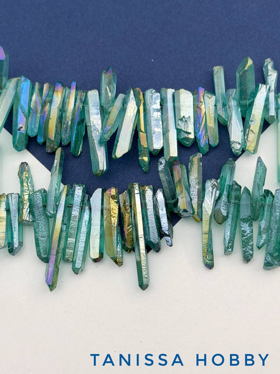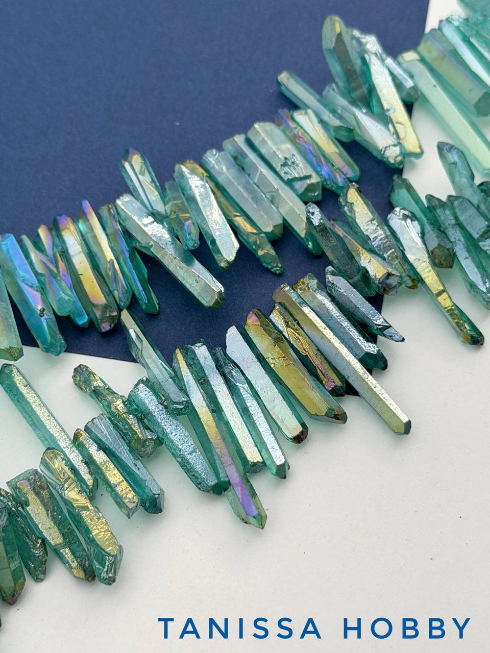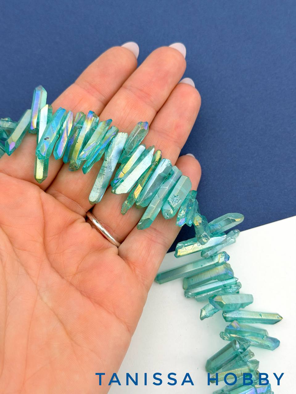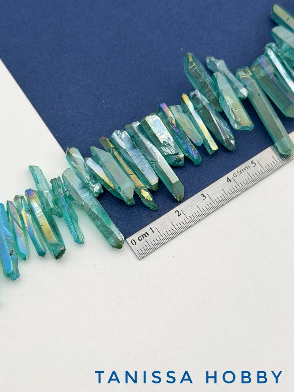Тонированный кварц, бирюзовый, кристалл 14-30мм, штука, Б039