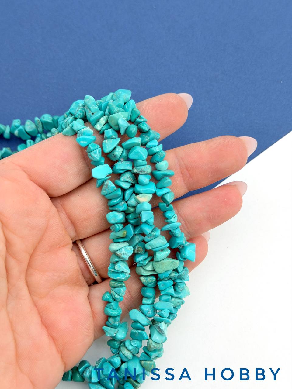 Турквенит, бирюза имитация, крошка, галтовка 5-10мм, 1/2 нити (38см), Б348