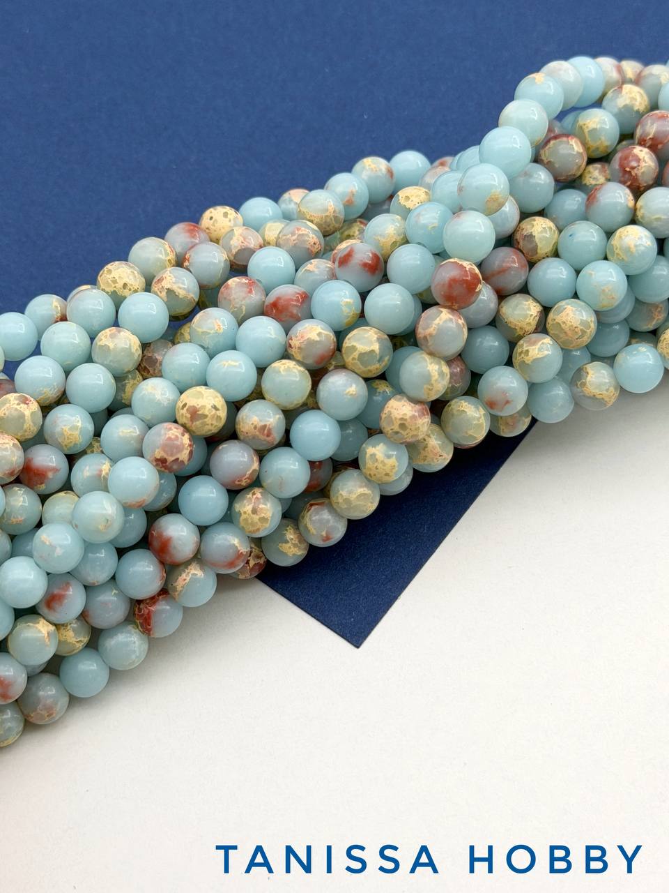 • Мятная яшма, варисцит имитация, бусины круглые 8мм, нить, Б370