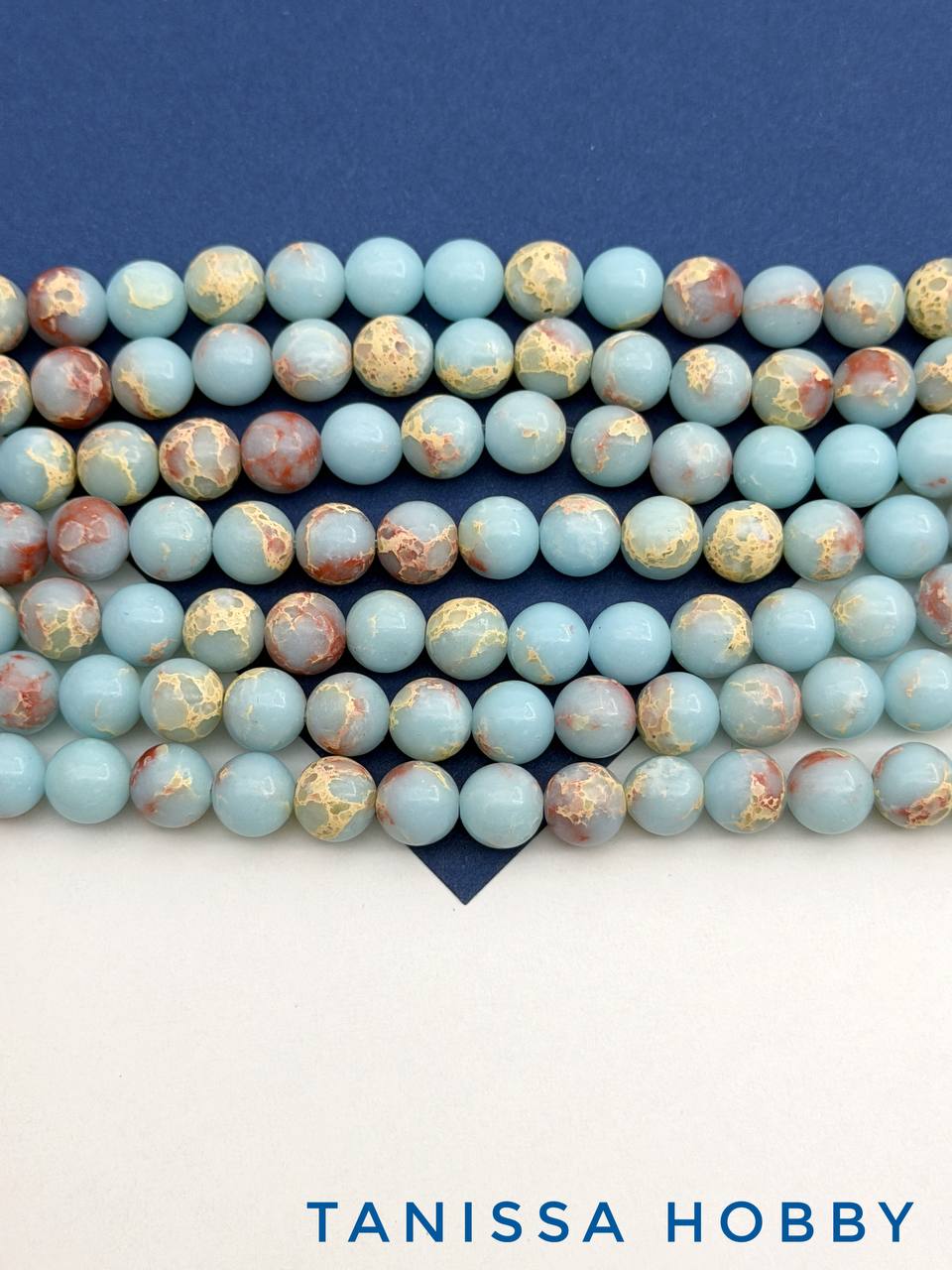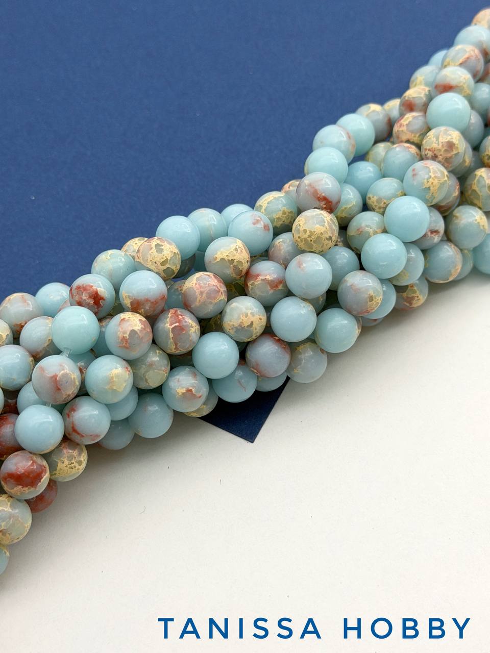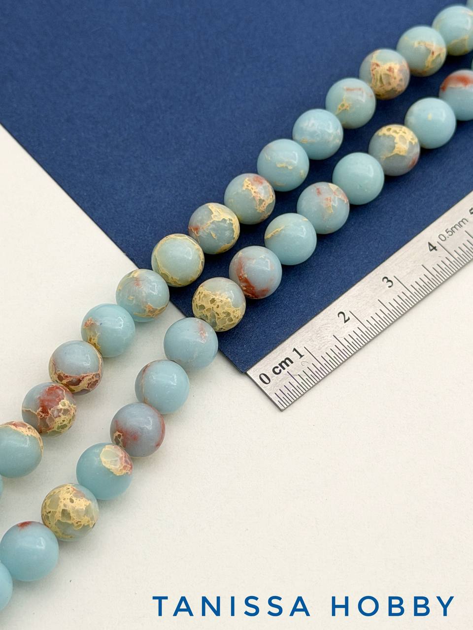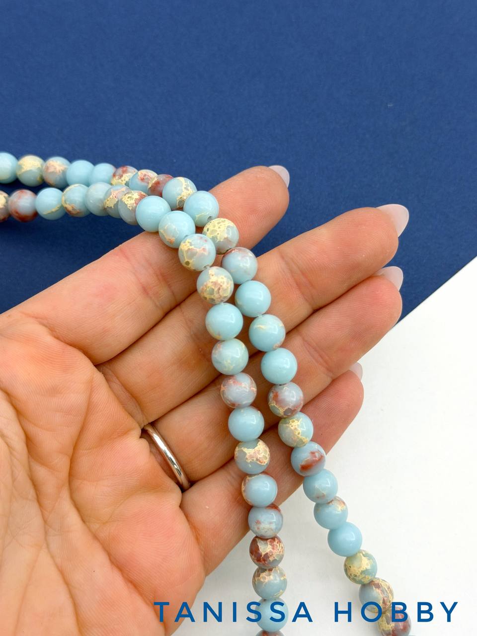 Мятная яшма, варисцит имитация, бусины круглые 8мм, нить, Б370