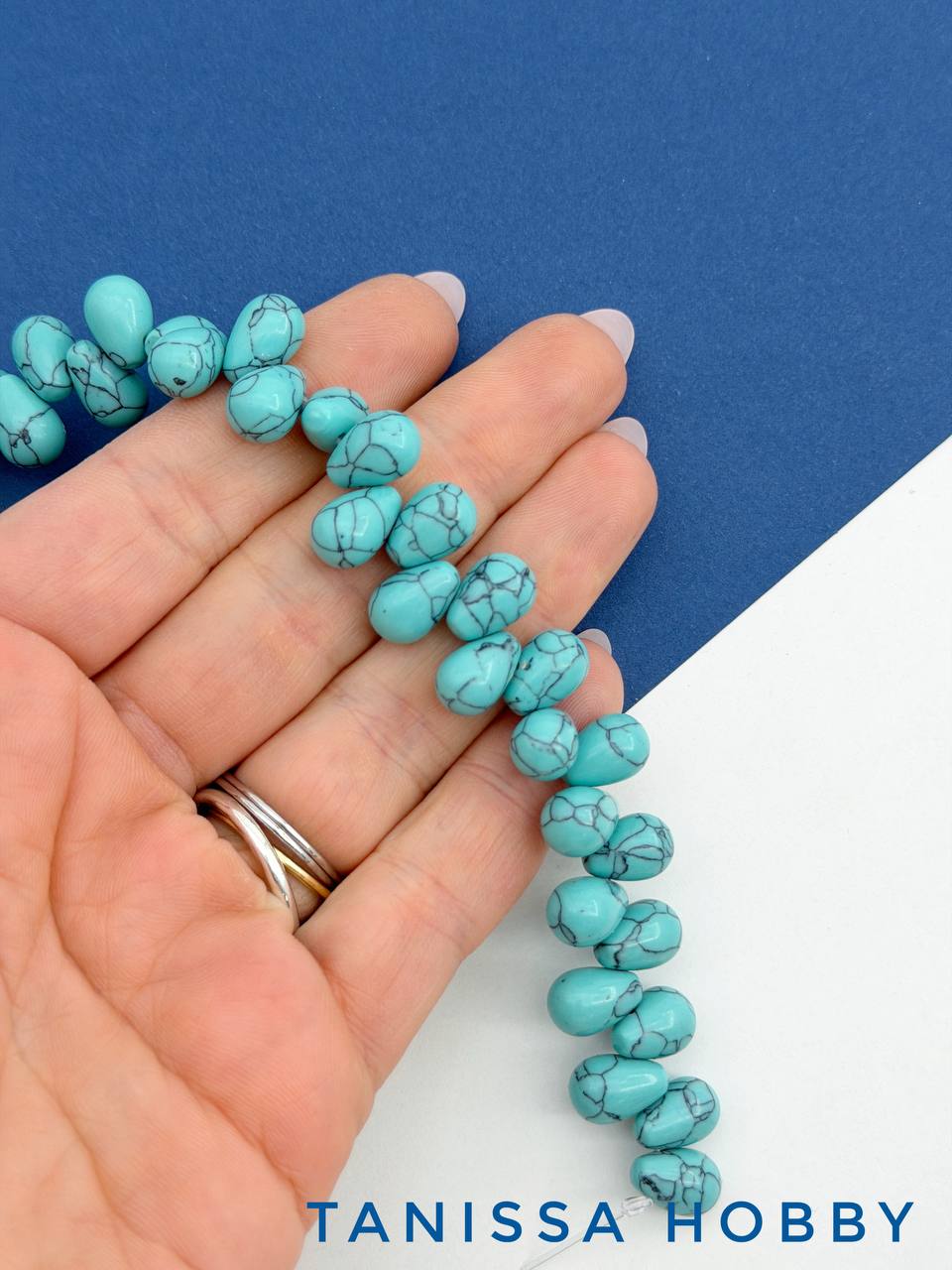 Бусина капля объемная под бирюзу с горизонтальным отверстием в верхней части бусины