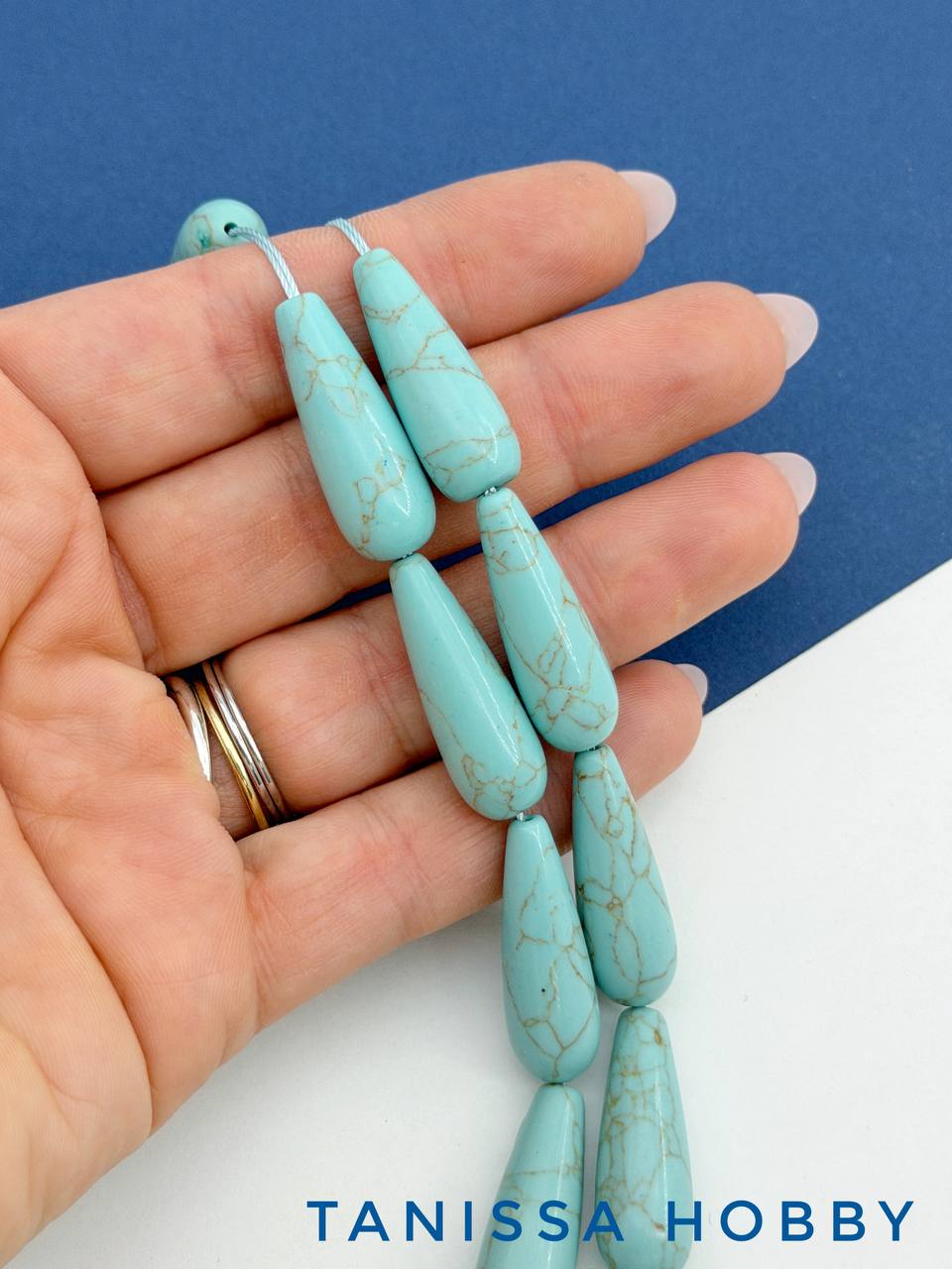 -Магнезит имитация бирюзы, бусина капля, 30х10мм, штука, Б288
