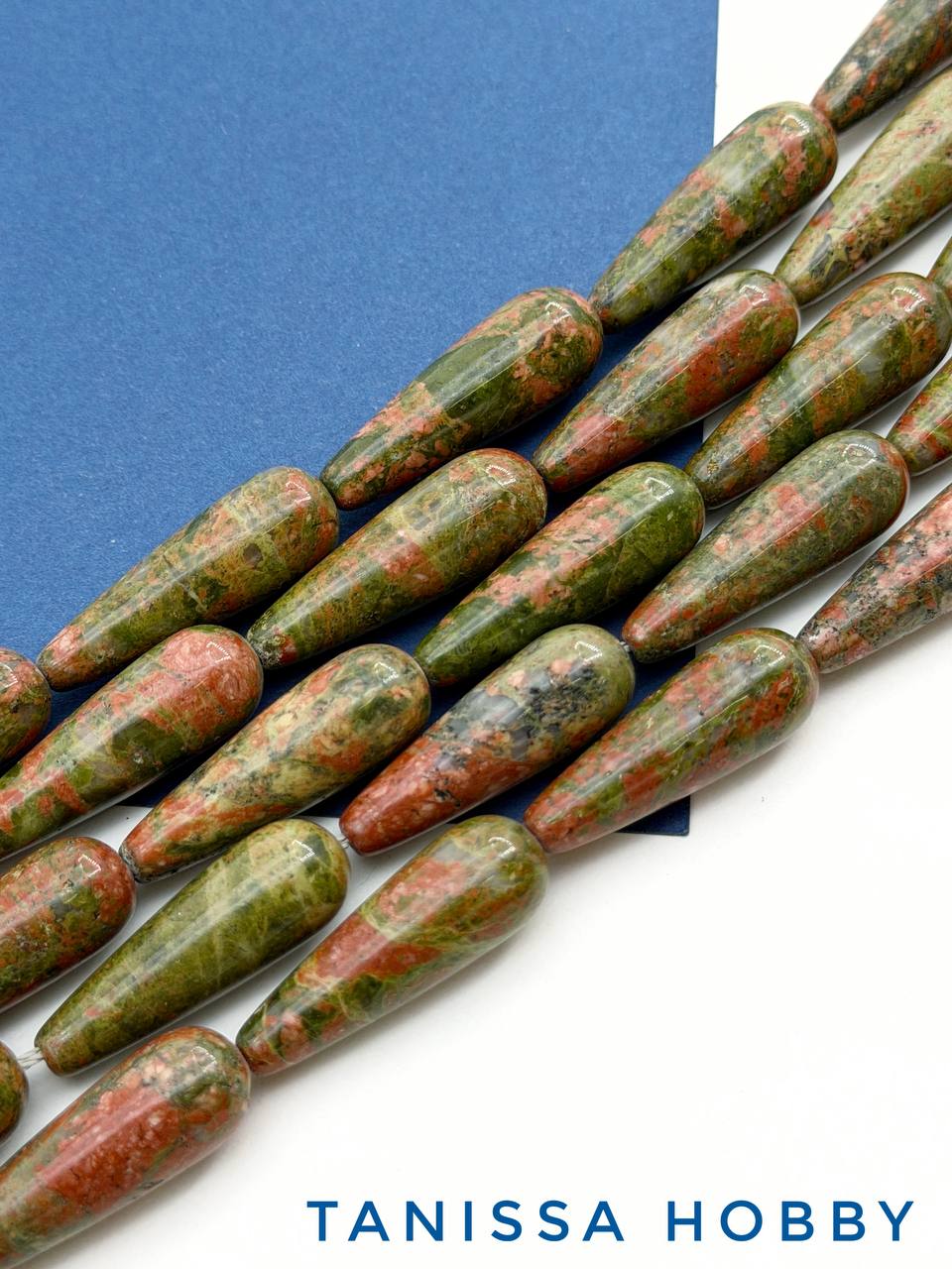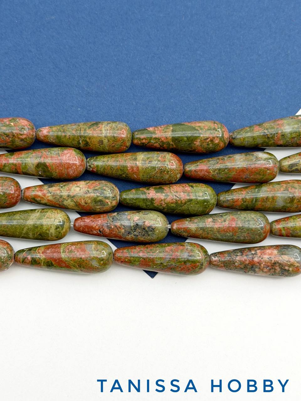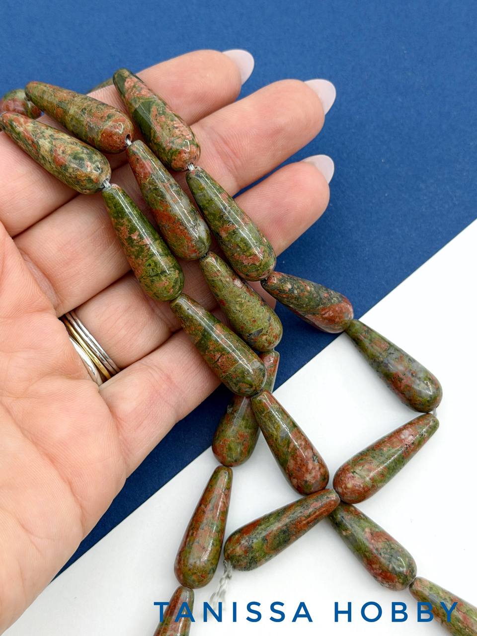 -Унакит, бусина капля, 30х10мм, штука, Б295