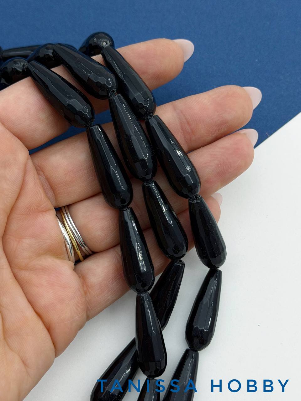 Черный агат огранка, бусина капля, 29х10мм, штука, Б297