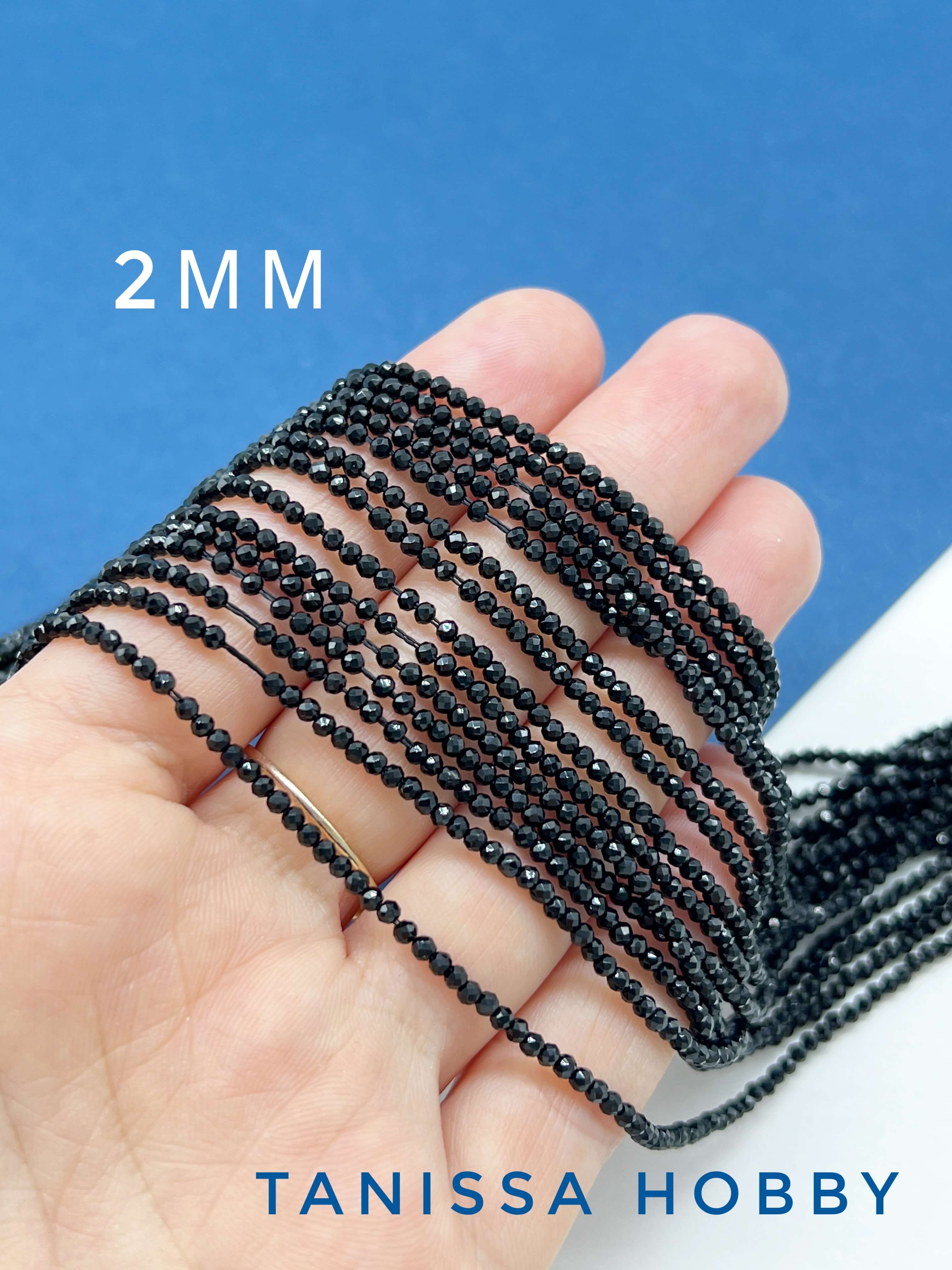 Шпинель синтетическая черная 2мм, нить. Б079