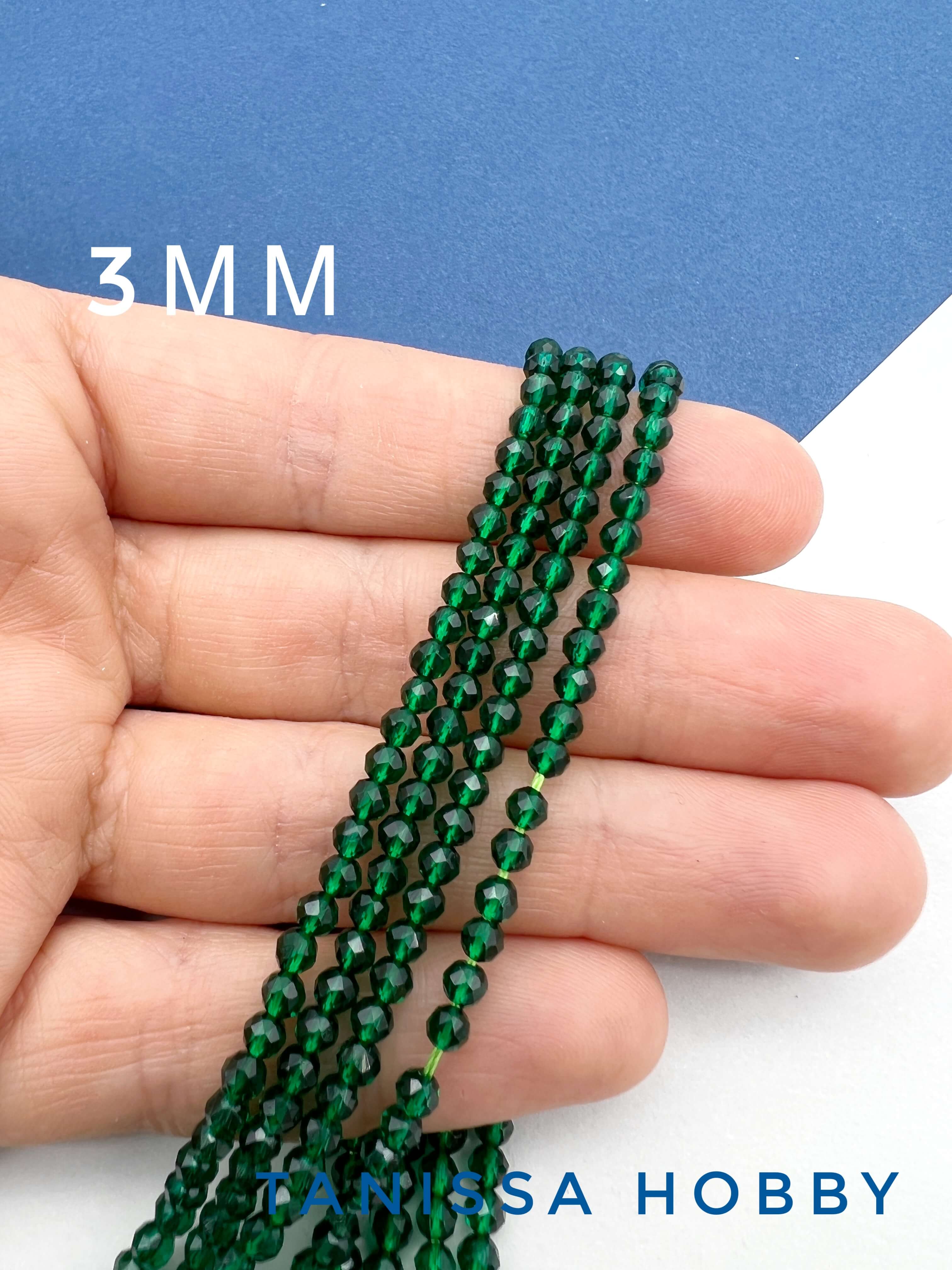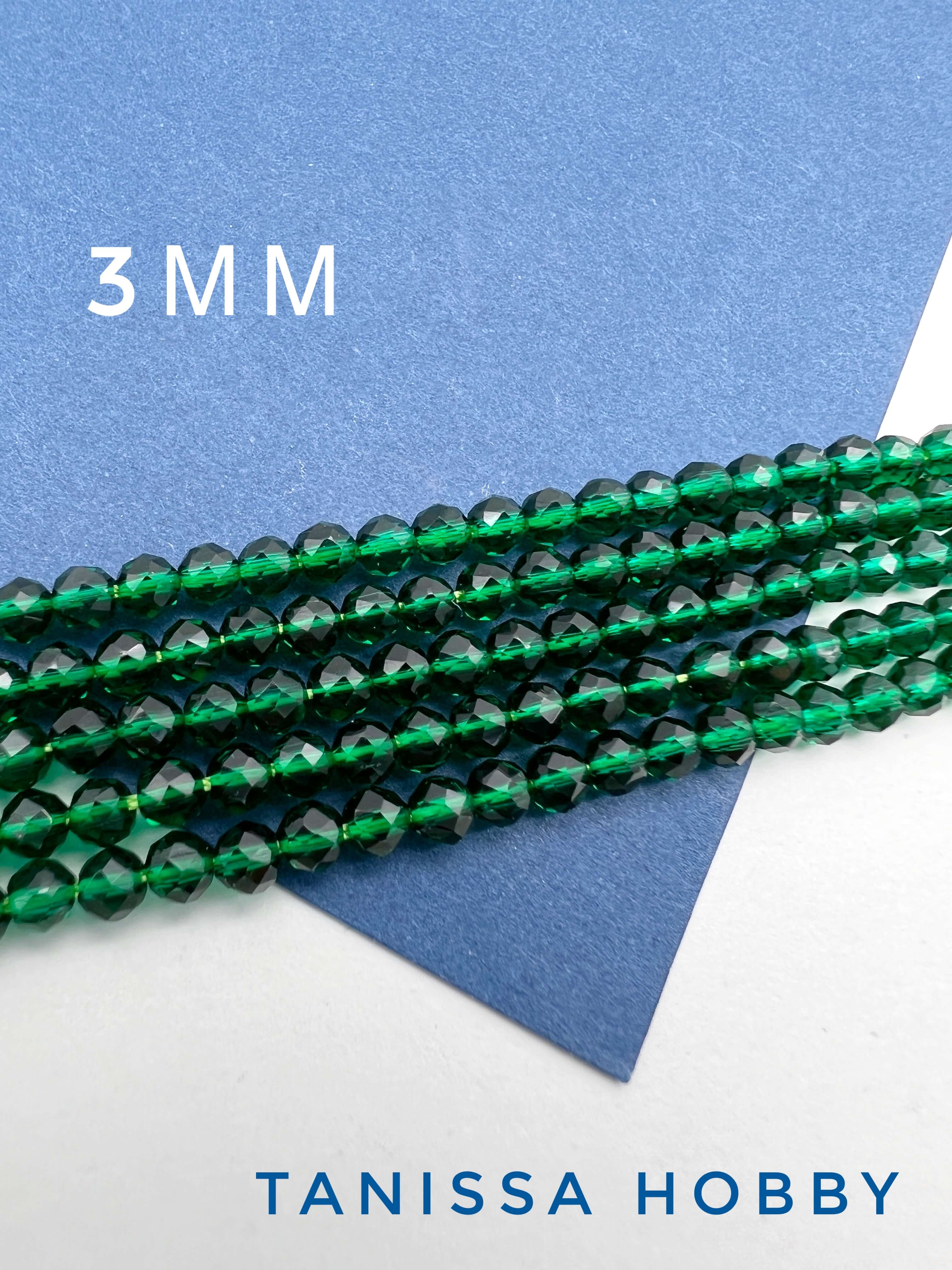 Шпинель синтетическая зеленая, 3мм, нить, Б240