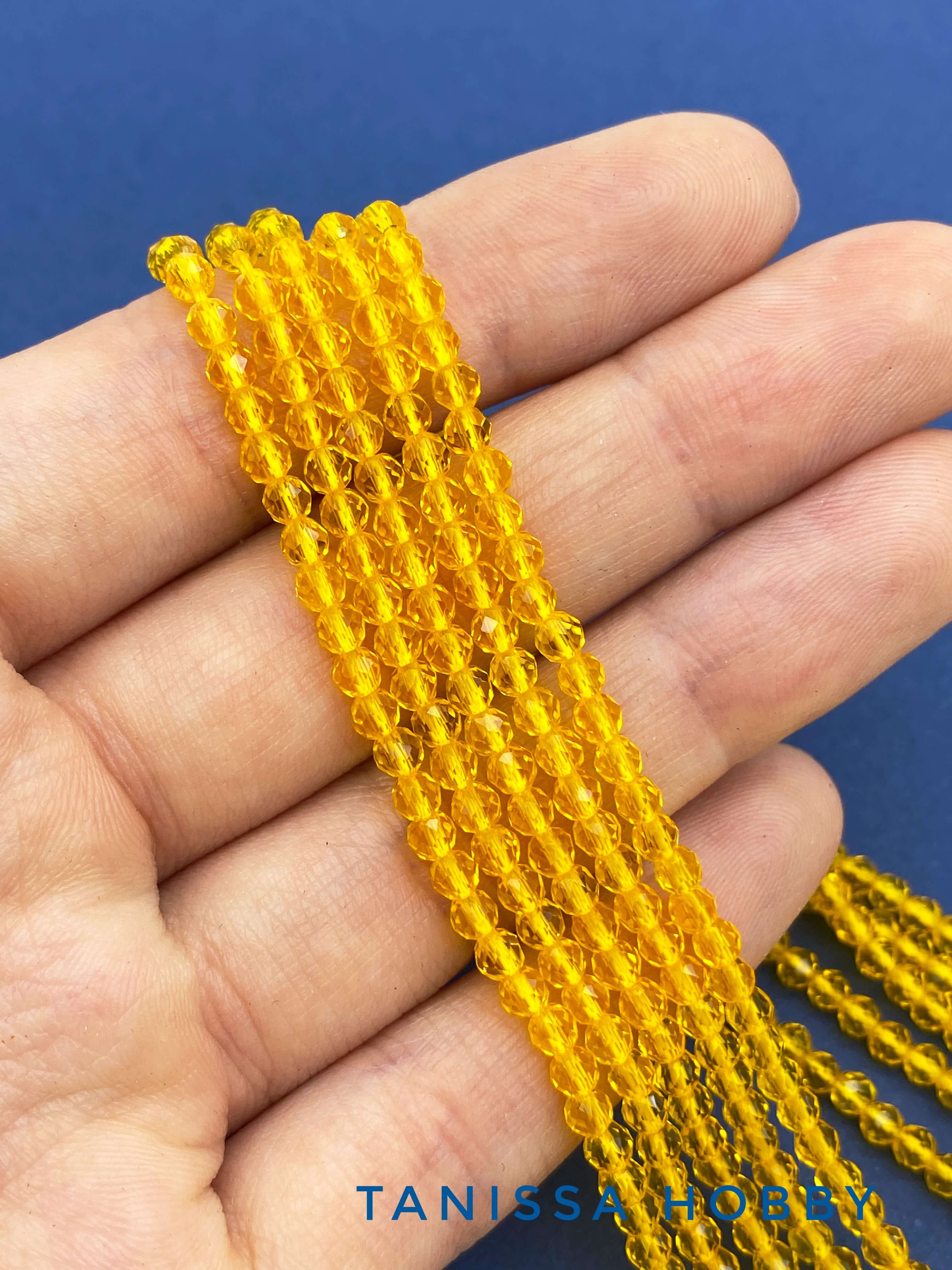 Шпинель синтетическая желтая, 3мм, нить Б199