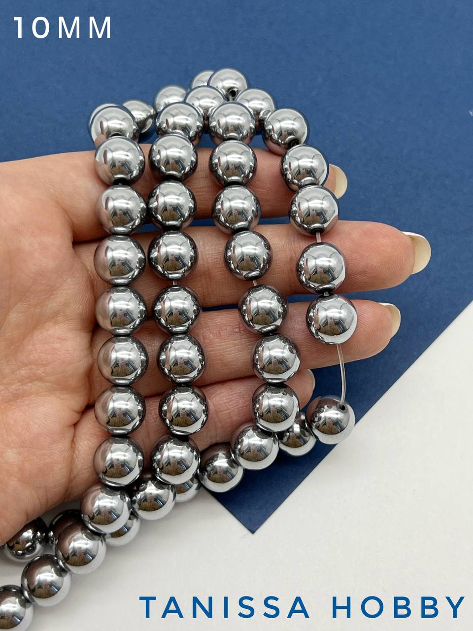 -Гематин гематит бусины круглые 10мм, 1/2 нити, ГТ006