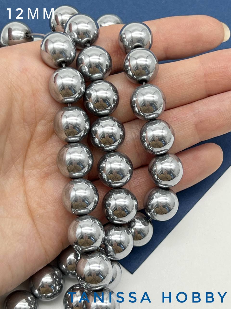 Гематин гематит бусины круглые 12мм, 1/2 нити, ГТ007