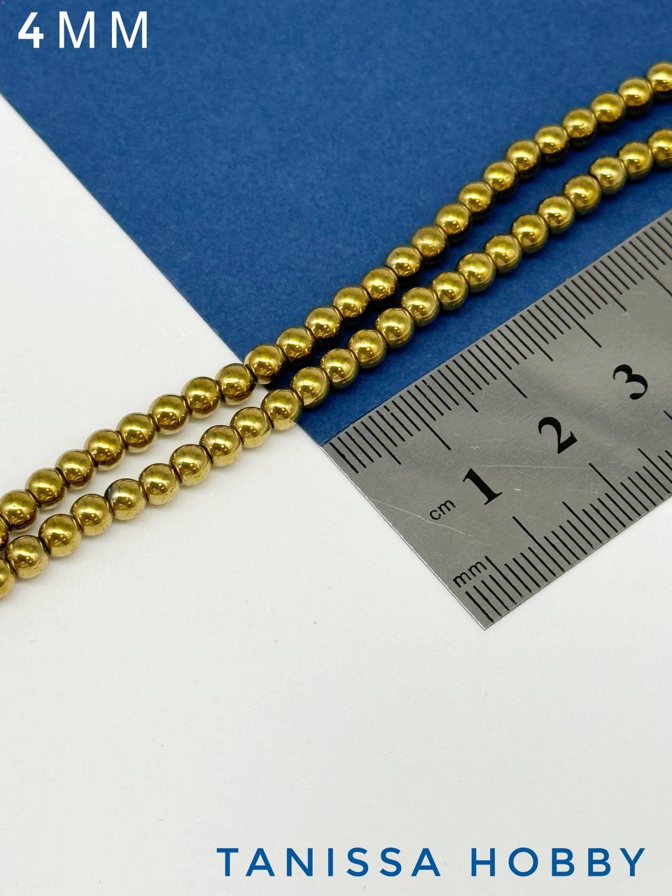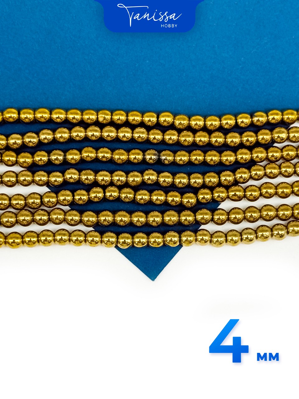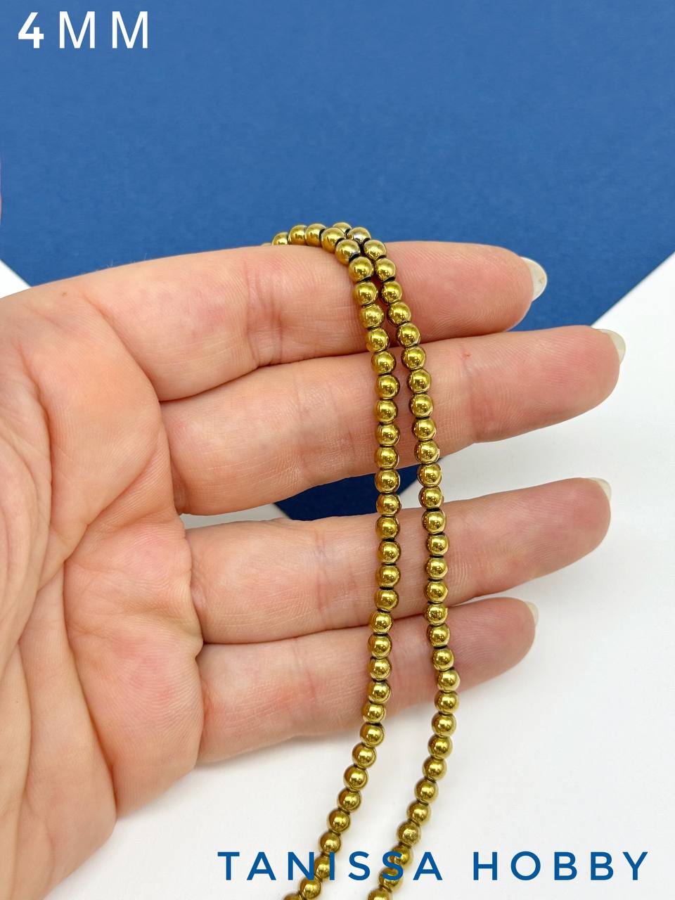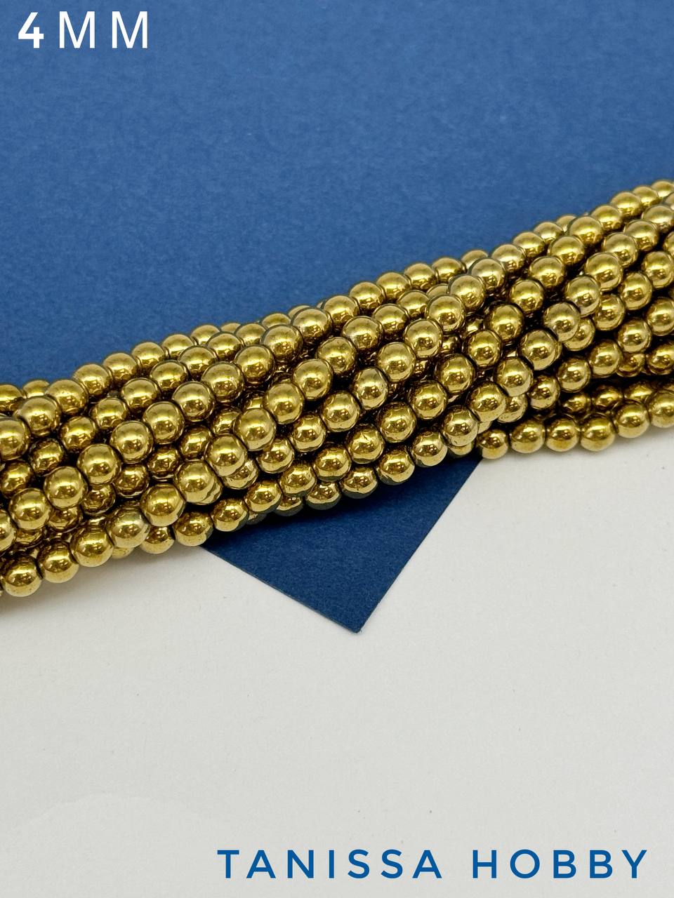 -Гематин гематит бусины круглые 4мм, золото, нить, ГТ010