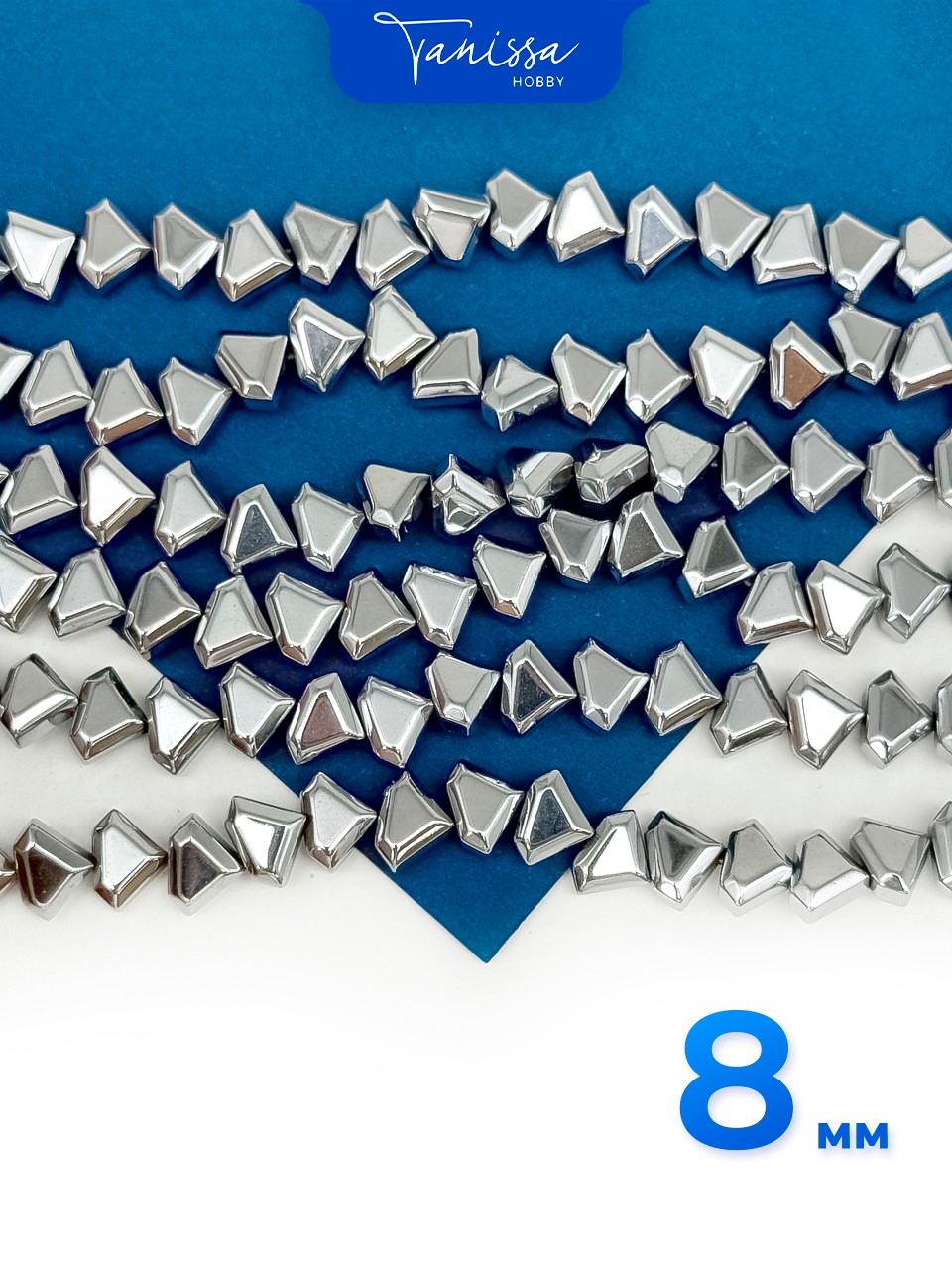Гематин гематит бриллиант, треугольник, 8мм, 1/2 нити, ГТ017