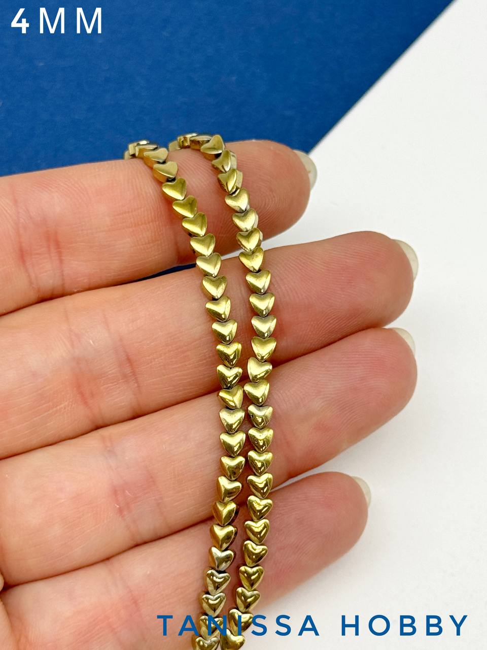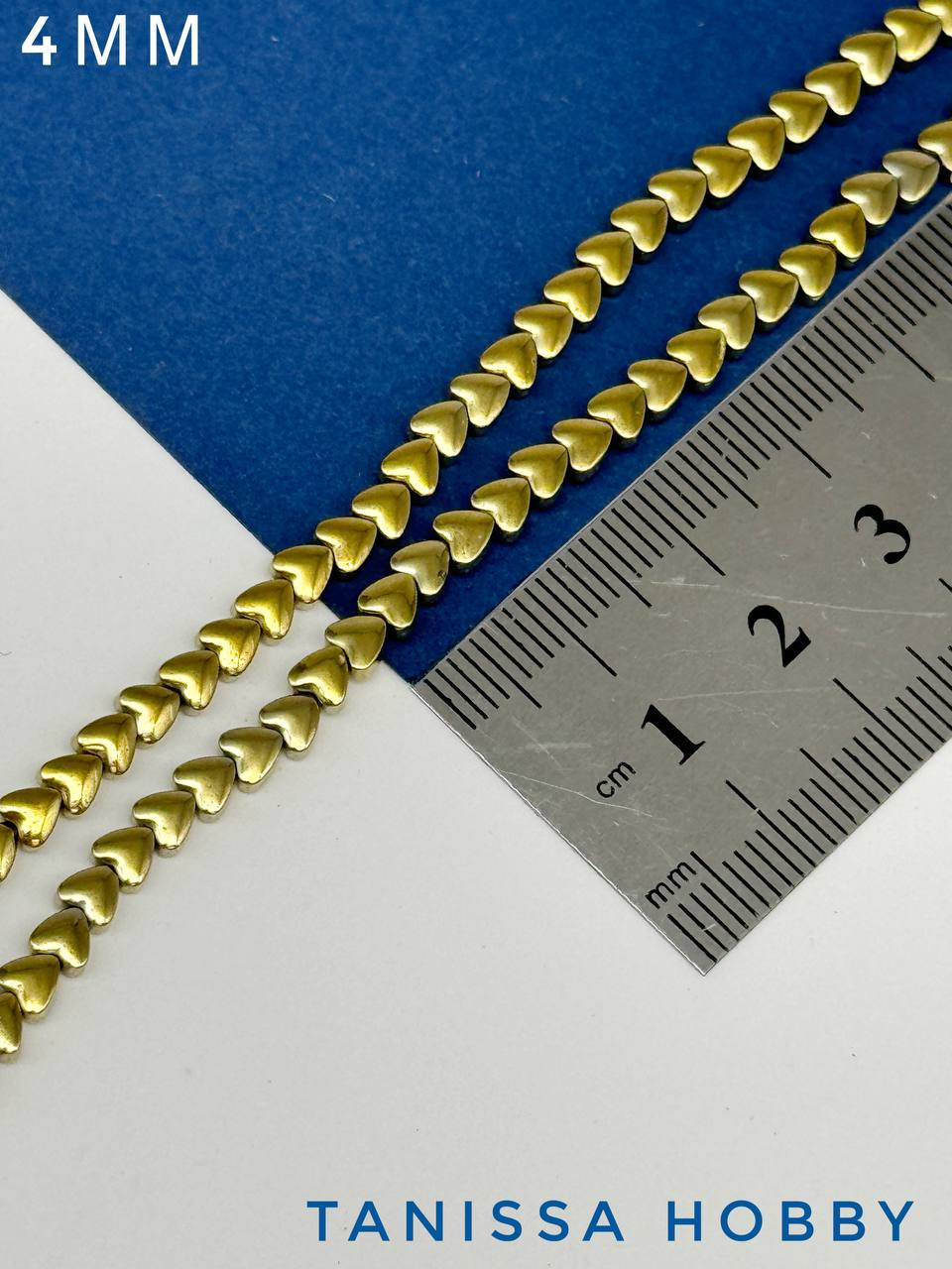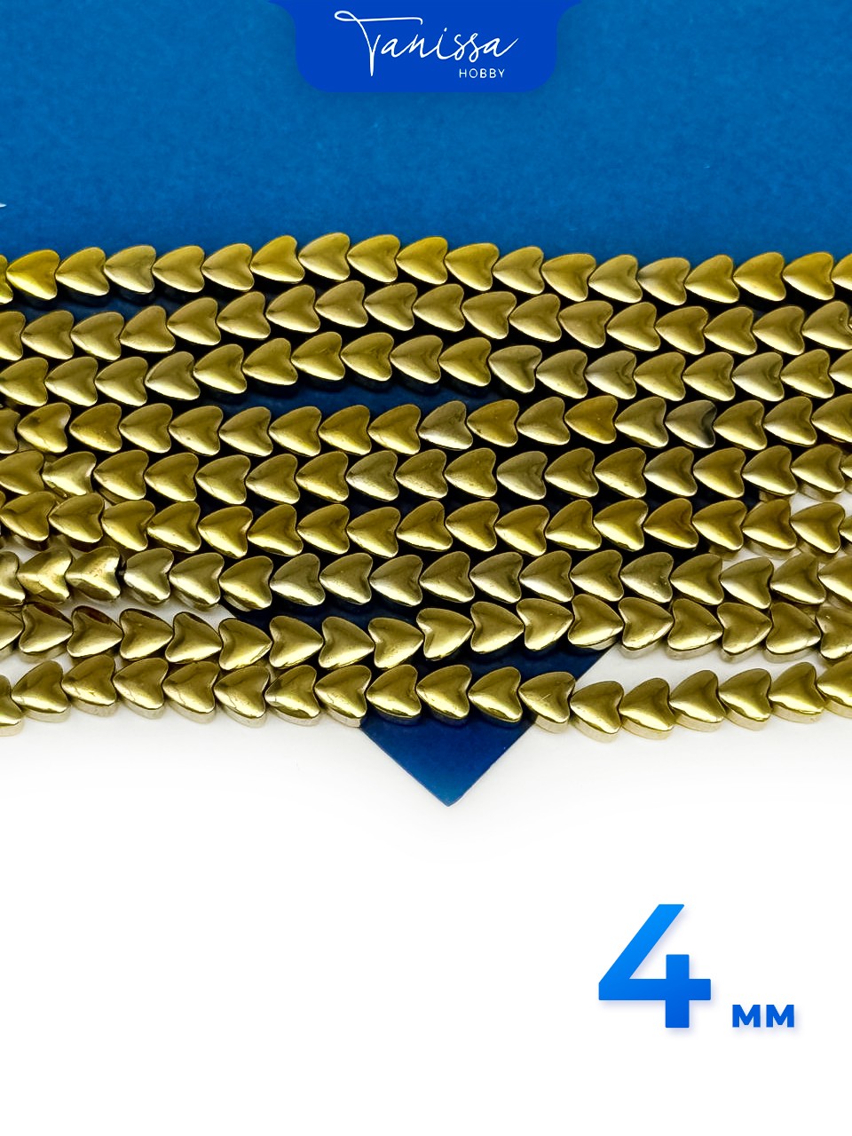 Гематин гематит сердце 4мм, золото, 1/2 нити, ГТ044