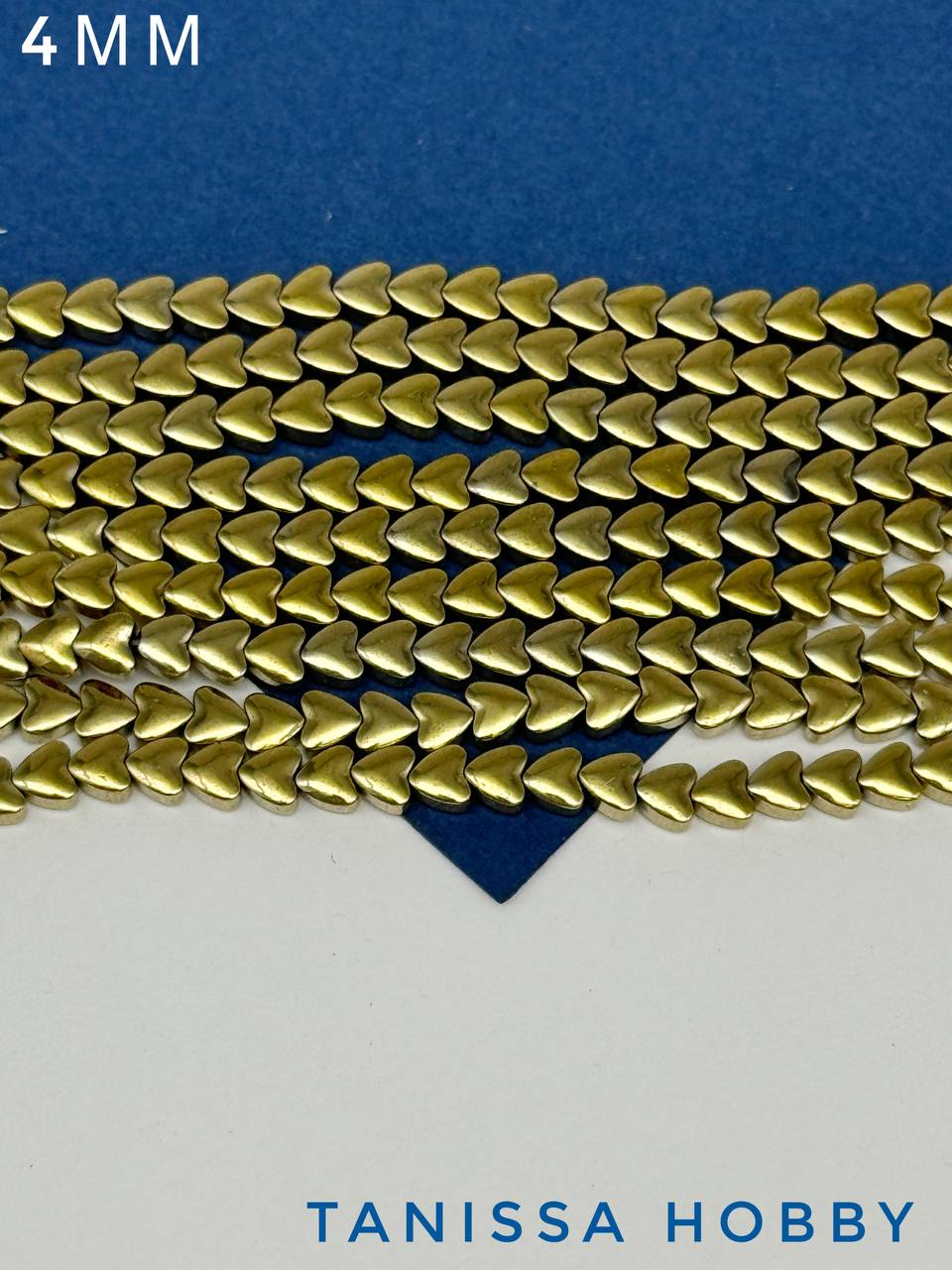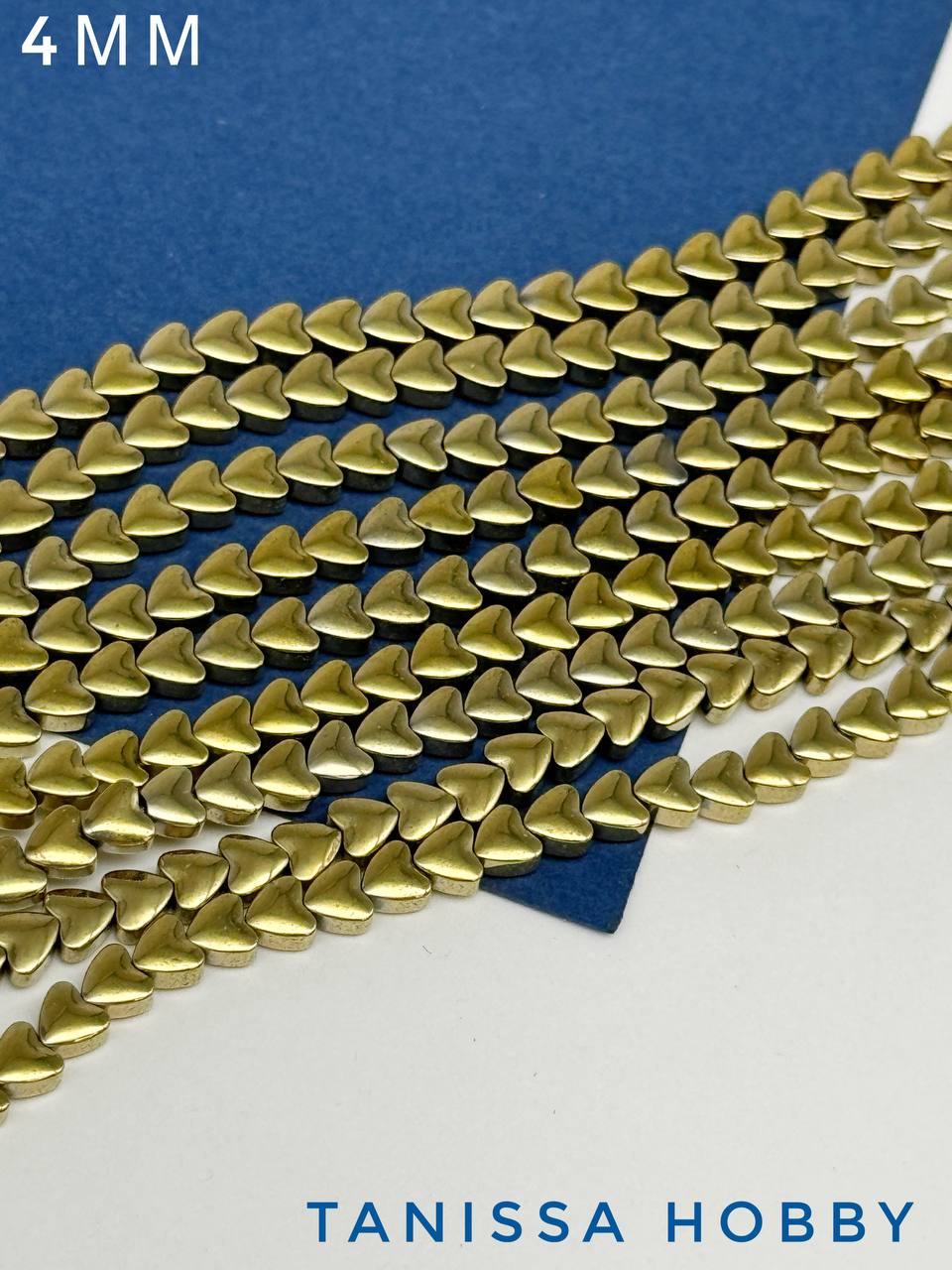 -Гематин гематит сердце 4мм, золото, 1/2 нити, ГТ044