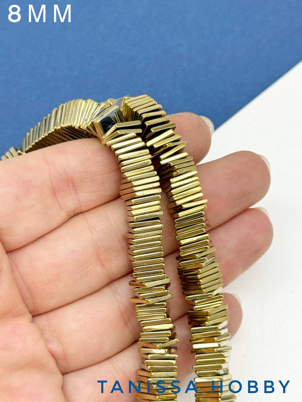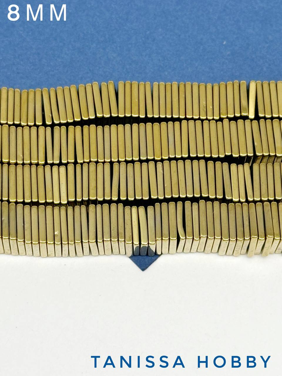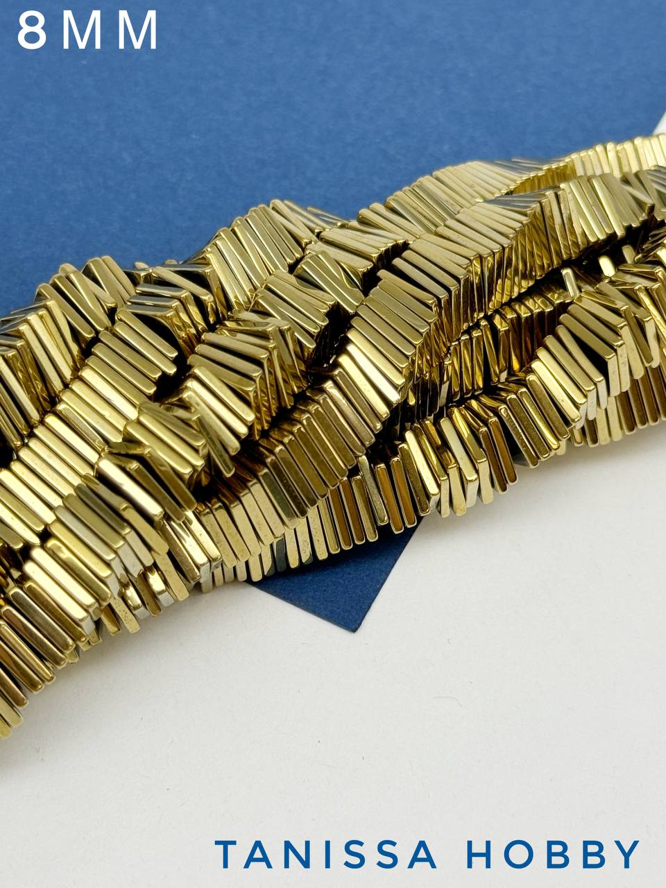 -Гематин гематит квадрат 8мм, золото, 1/2 нити, ГТ052