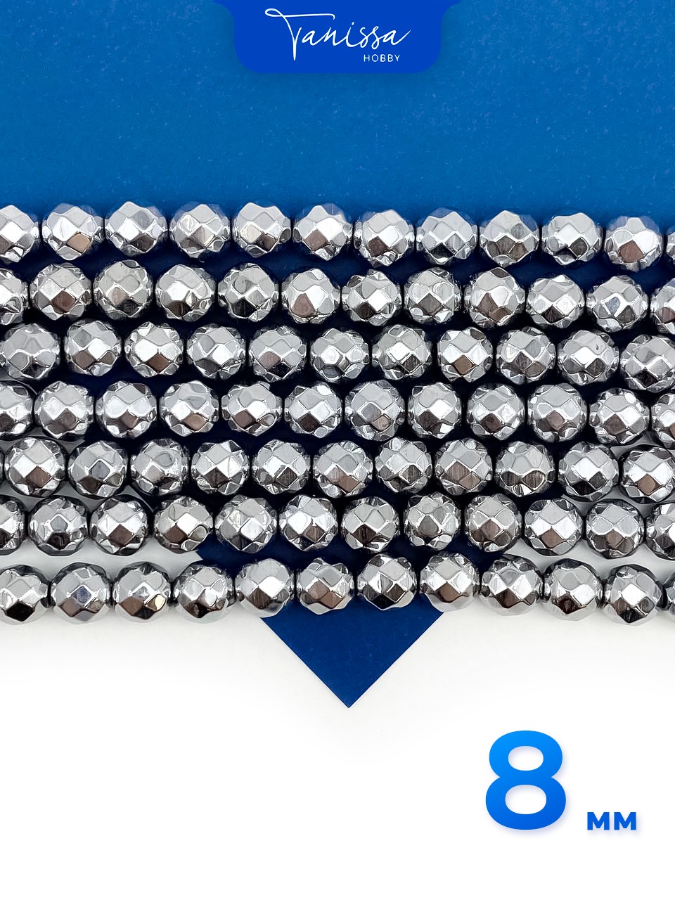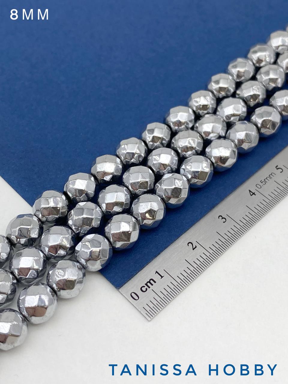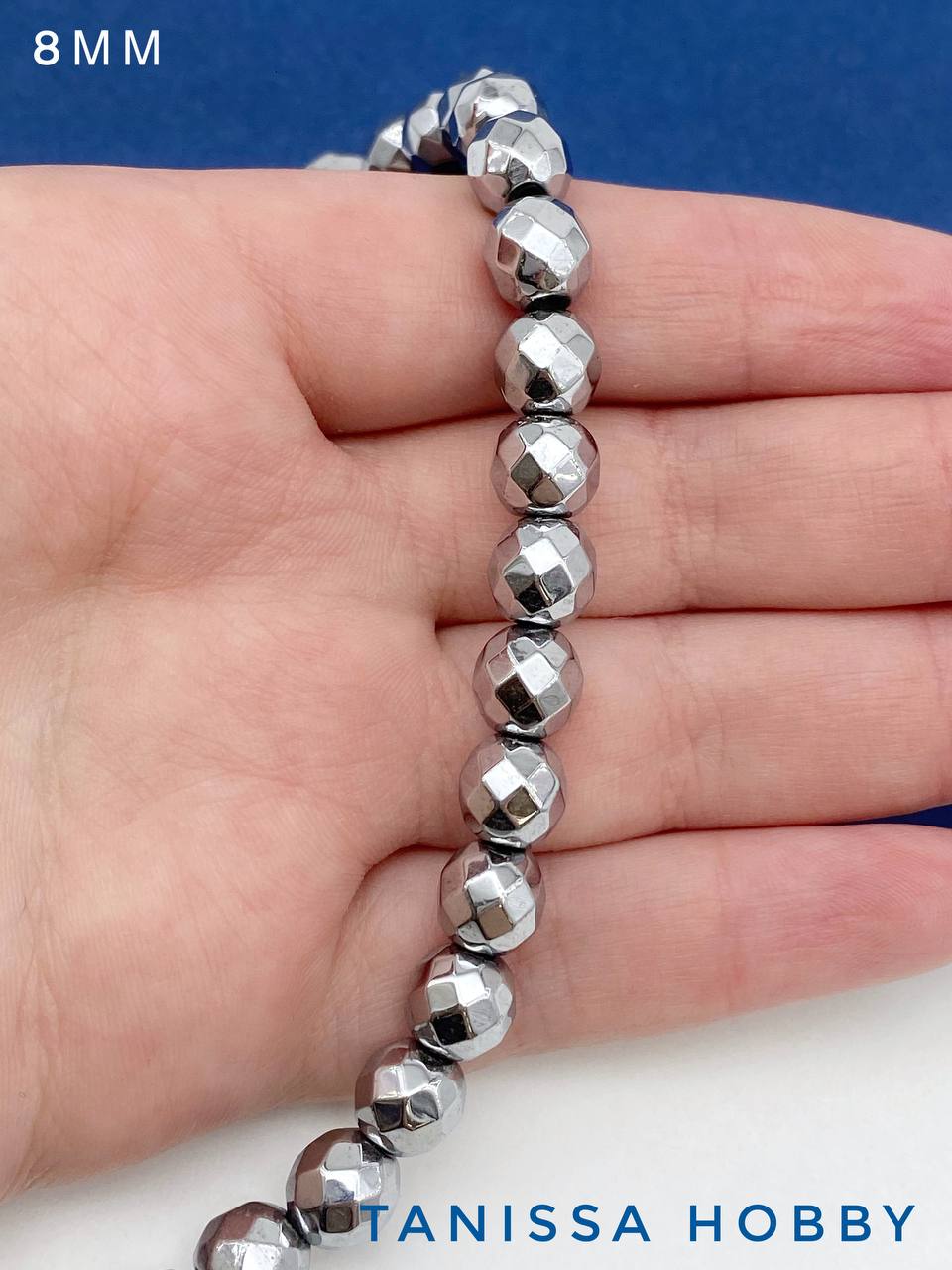 -Гематин гематит бусины круглые огранка 8мм, нить, ГТ060