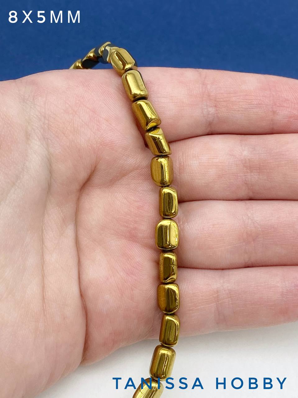 -Гематин гематит бусины овал галтовка 5х8мм, золото, нить, ГТ076