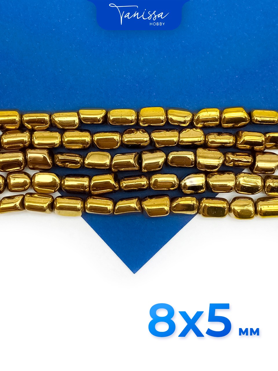 • Гематин гематит бусины рис огранка 3х5мм, золото, нить, ГТ088