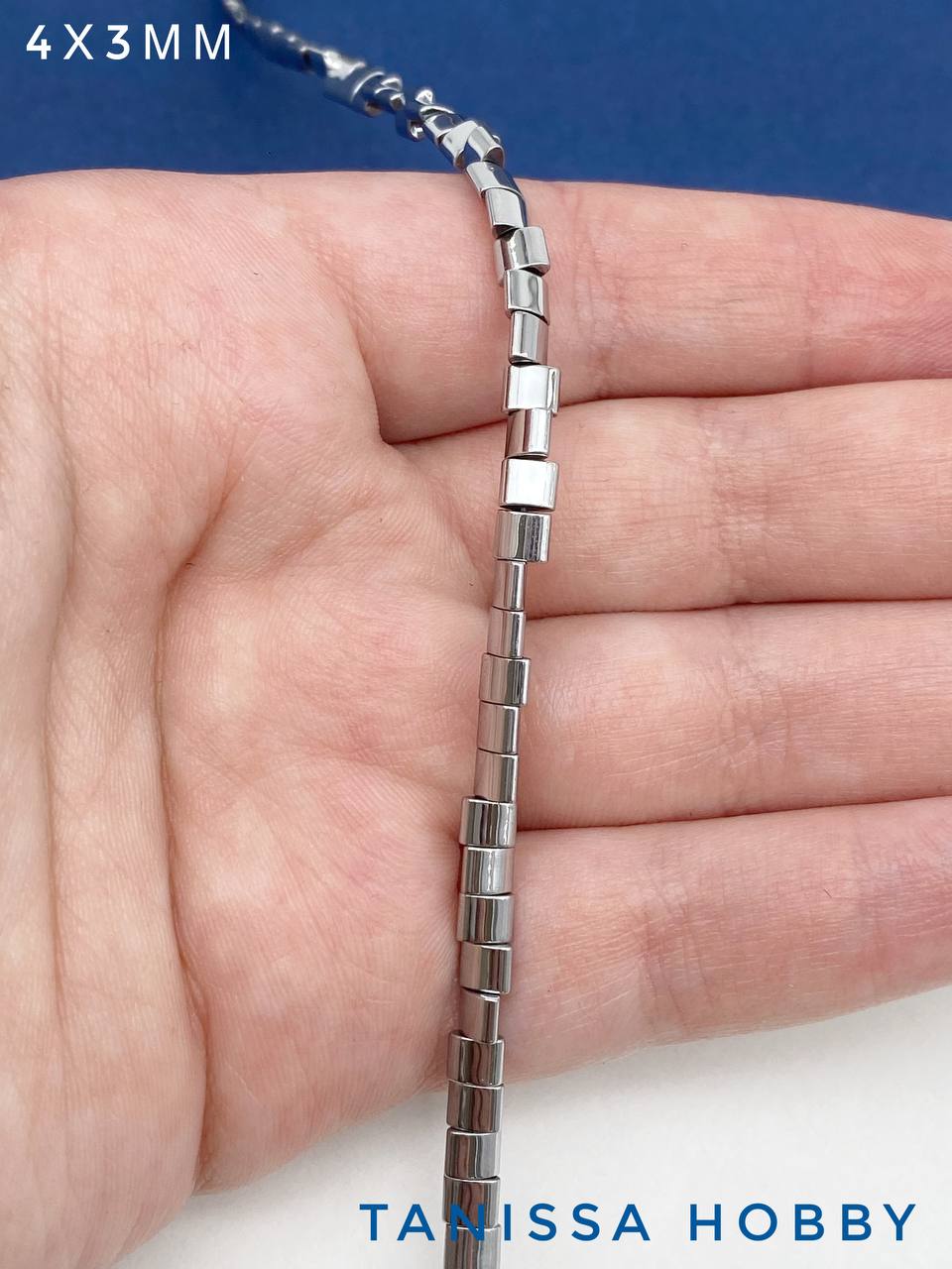 -Гематин гематит бусины плоская трубочка 4х3х2мм, нить, ГТ078