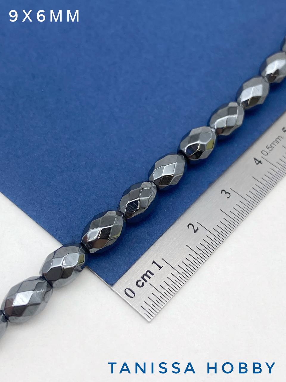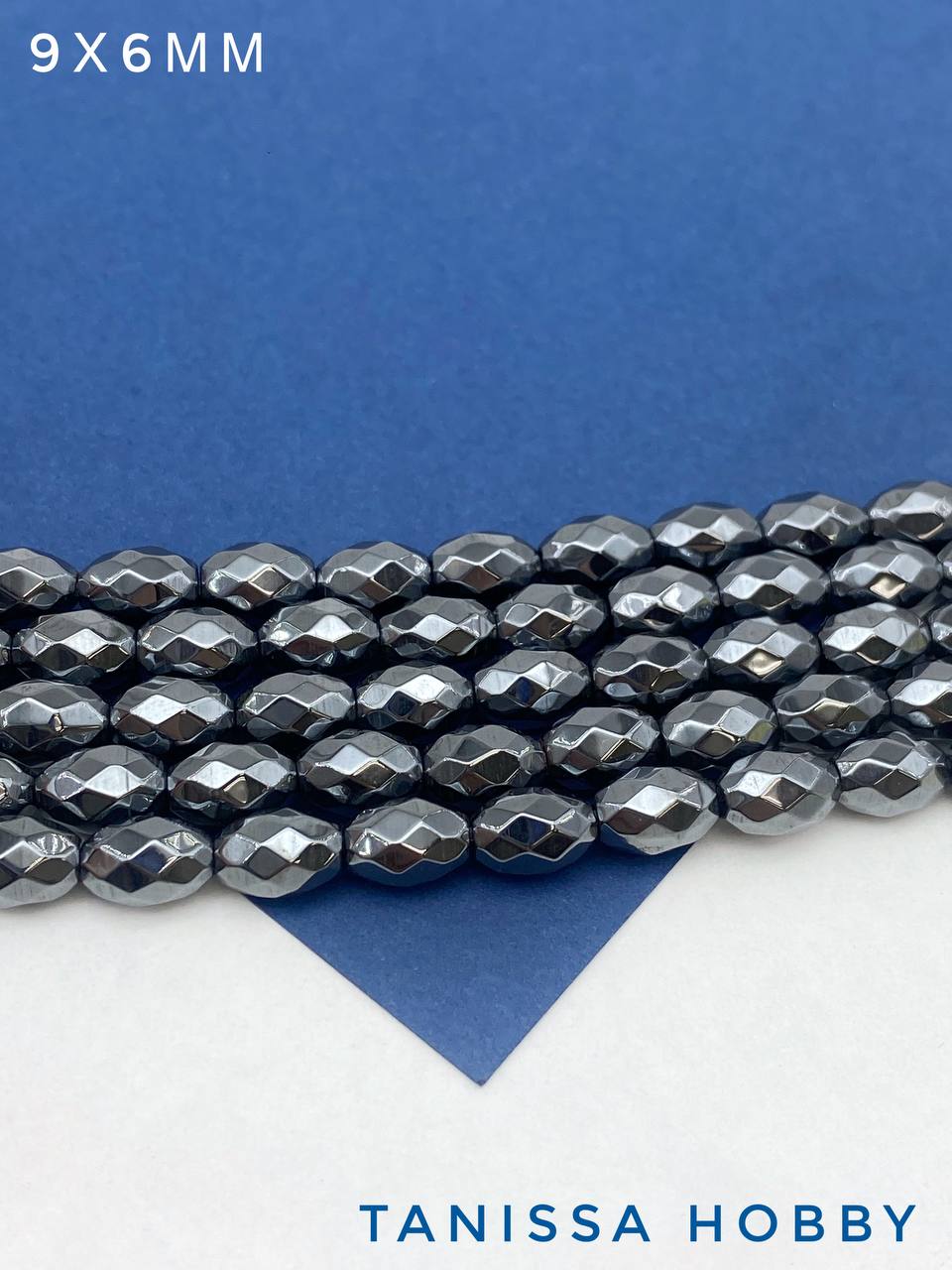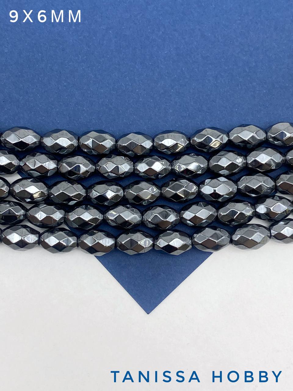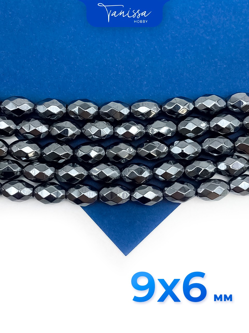 Гематин гематит бусины рис огранка 6х9мм, черный, нить, ГТ087
