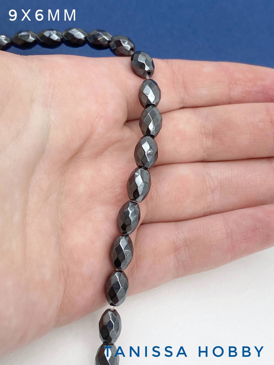 -Гематин гематит бусины рис огранка 6х9мм, черный, нить, ГТ087