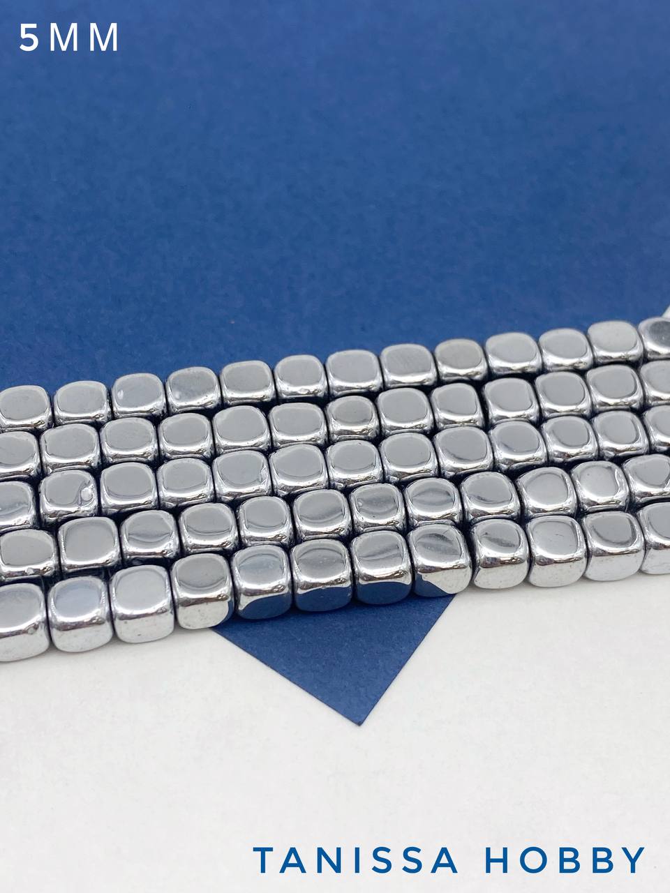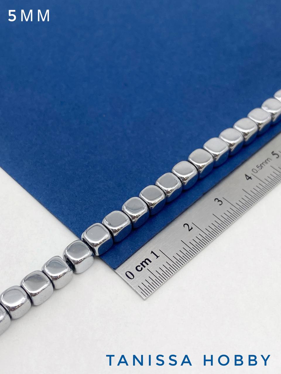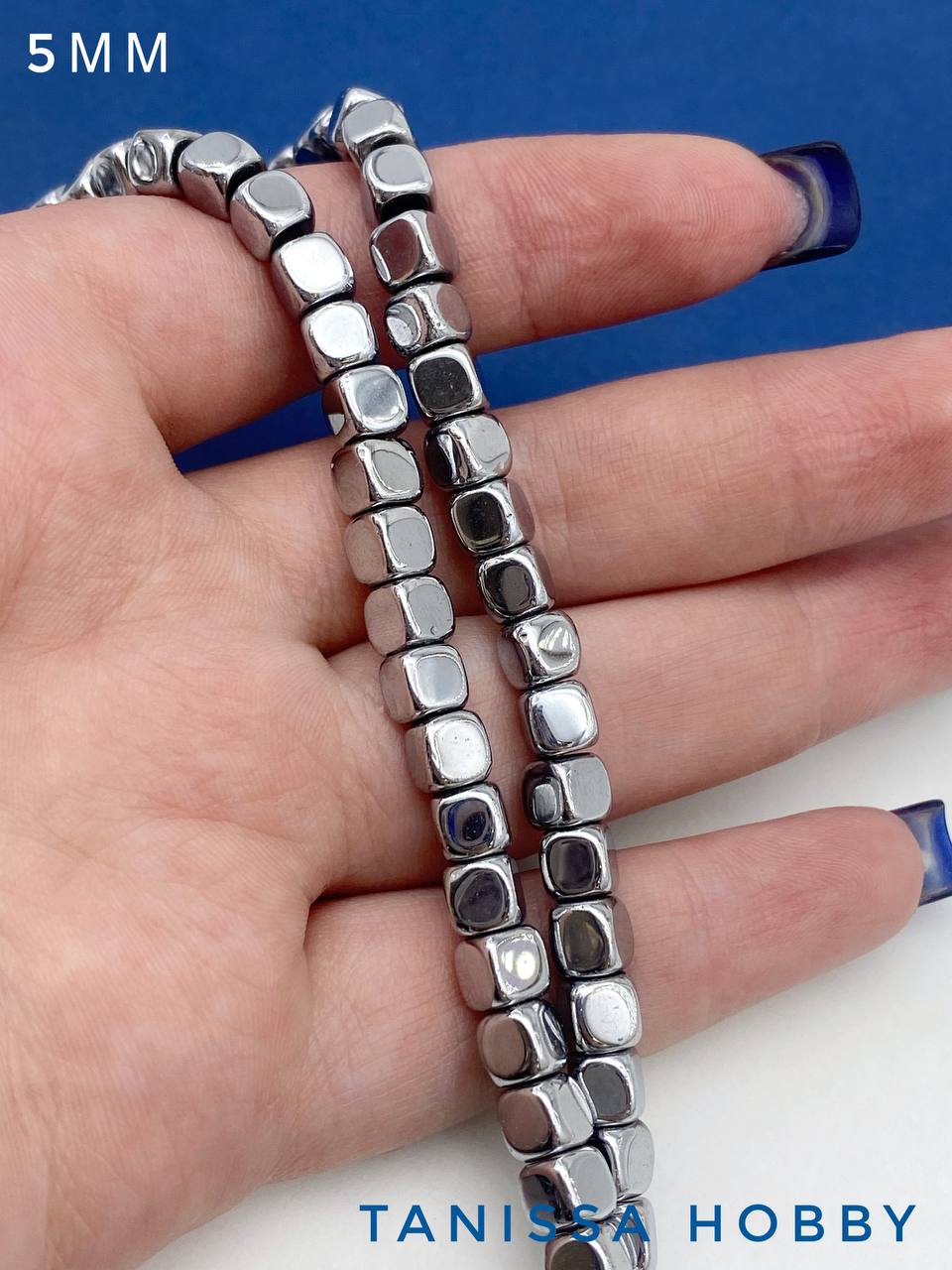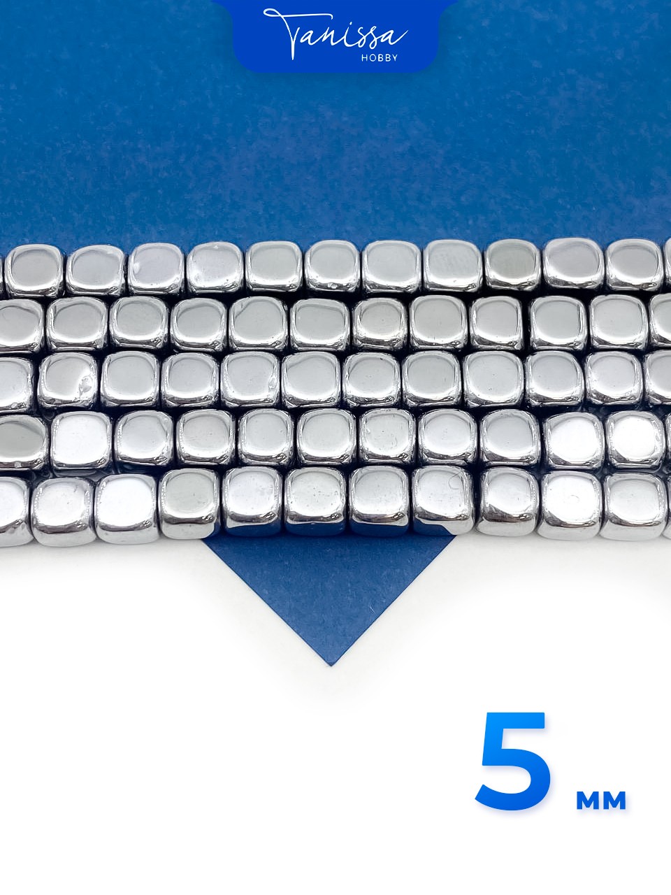 -Гематин гематит бусины куб квадрат 5мм, нить, ГТ093