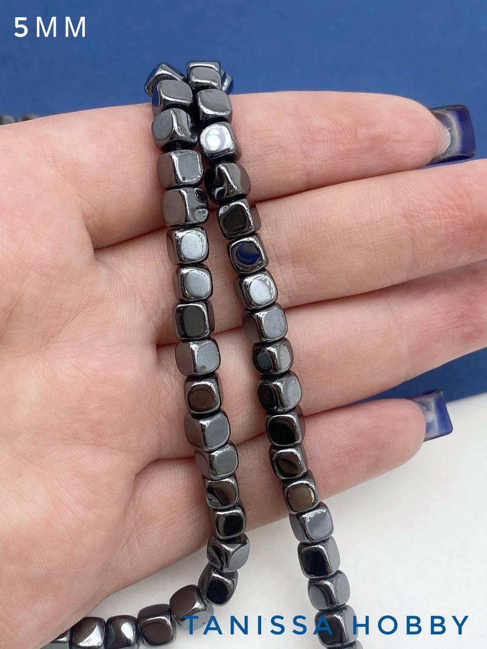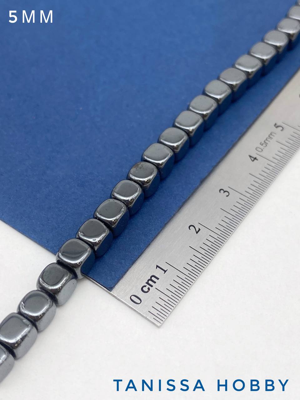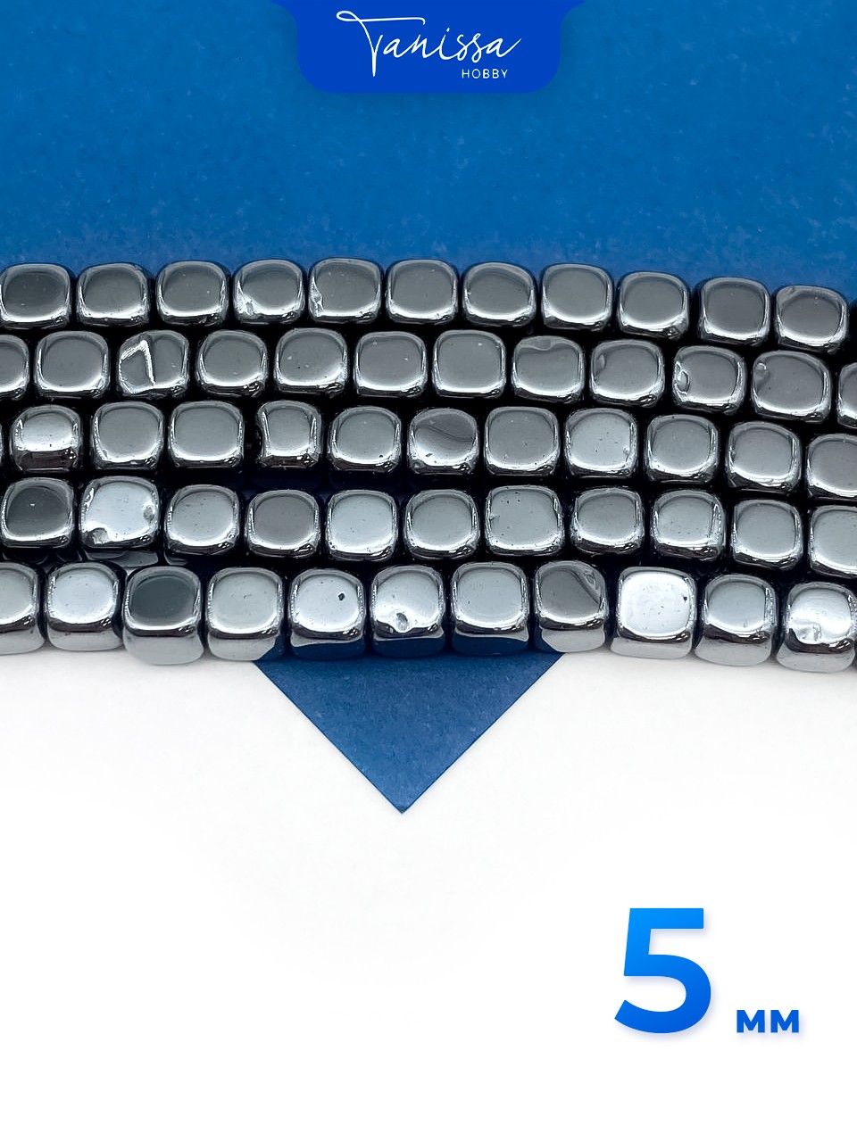 Гематин гематит бусины куб квадрат 5мм, черный, нить, ГТ096
