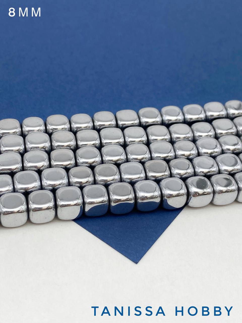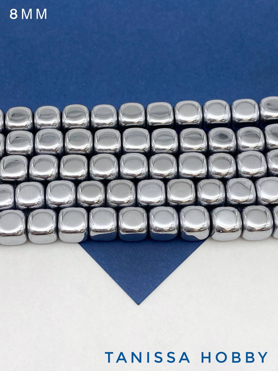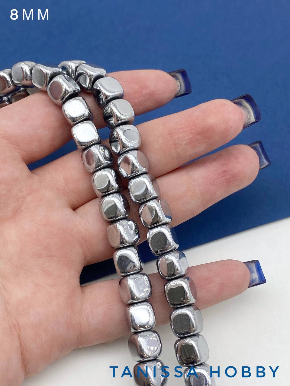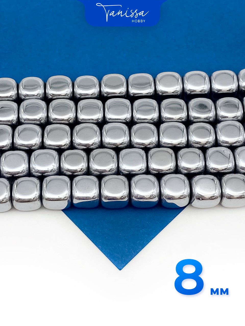 Гематин гематит бусины куб квадрат 8мм, нить, ГТ095