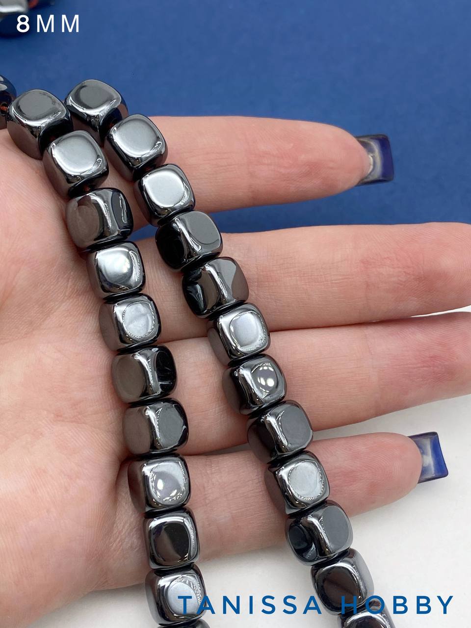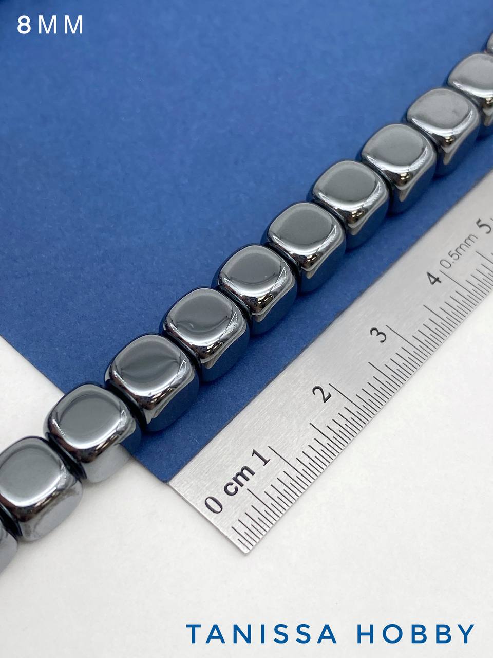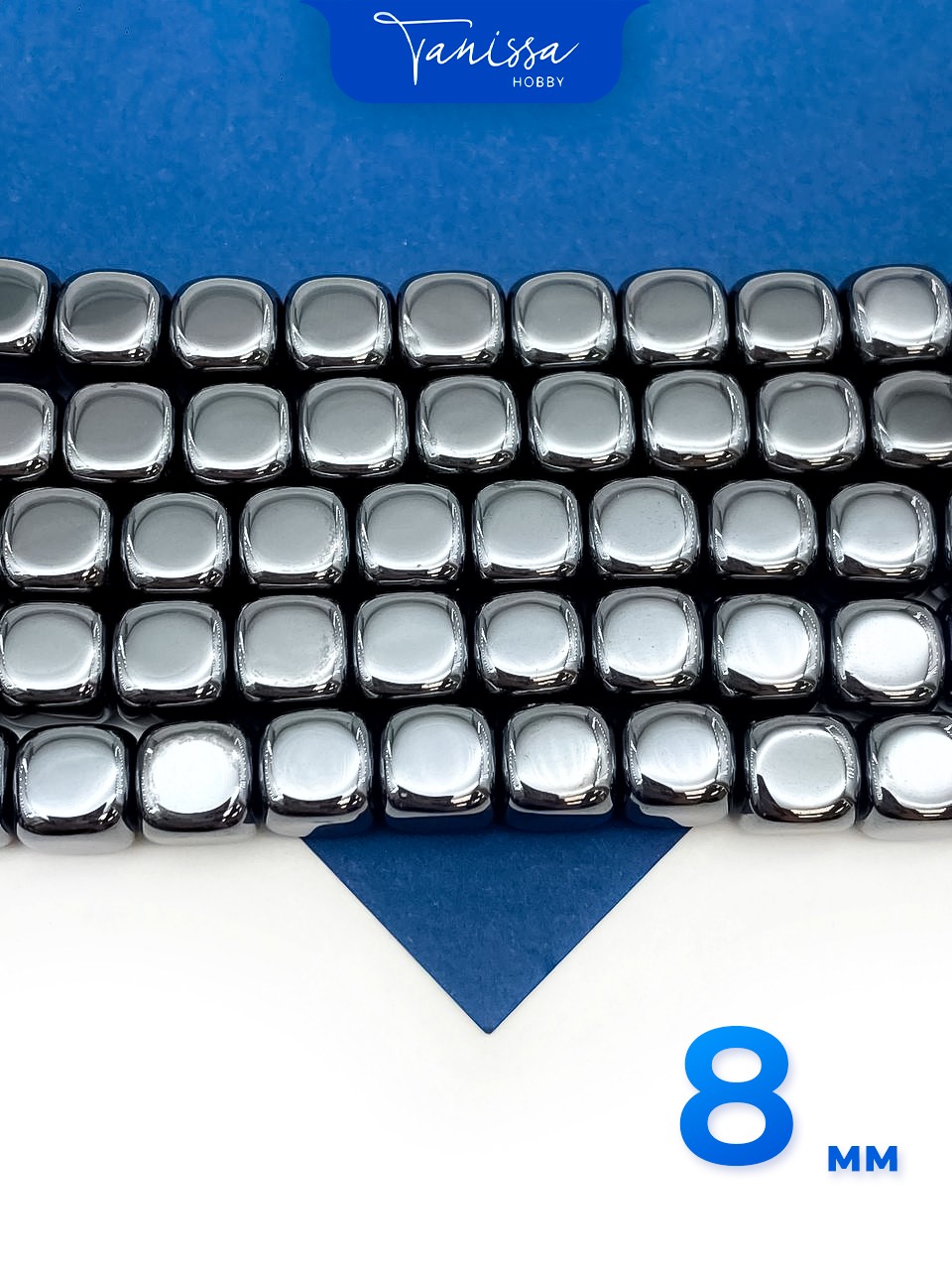 • Гематин гематит квадрат 8мм, 1/2 нити, ГТ051