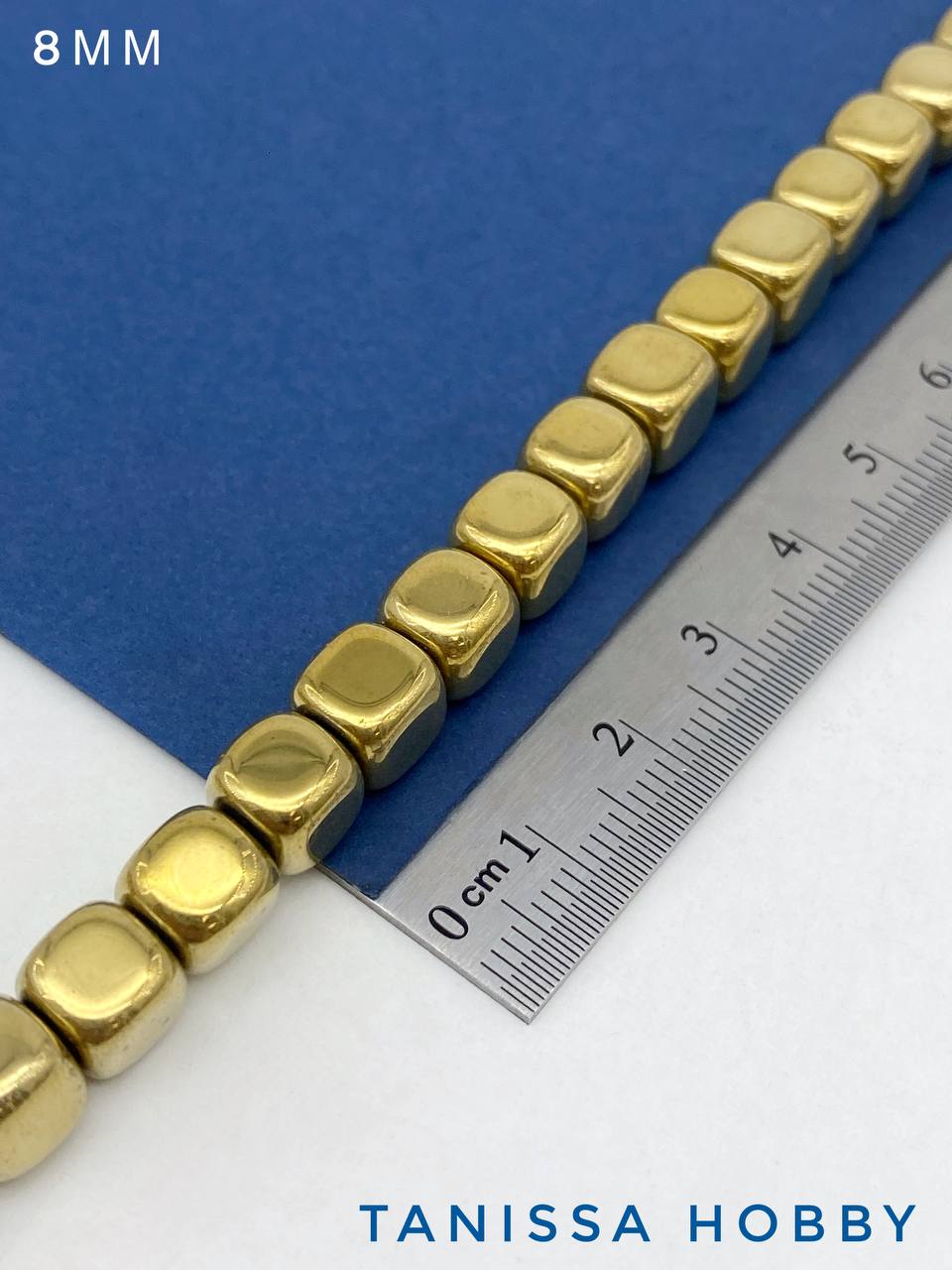 -Гематин гематит бусины куб квадрат 8мм, золото, нить, ГТ101