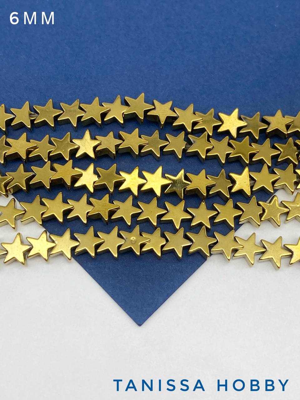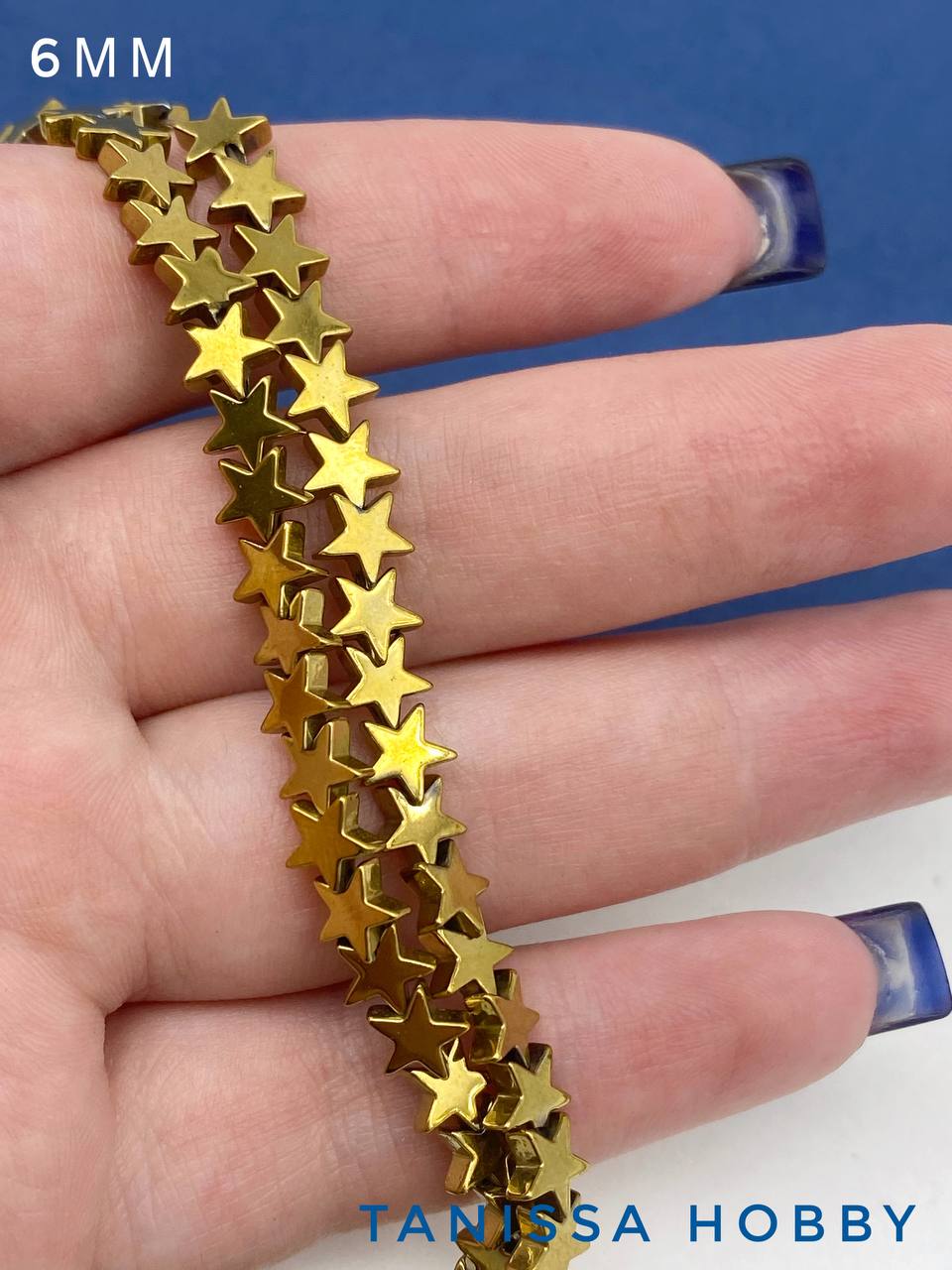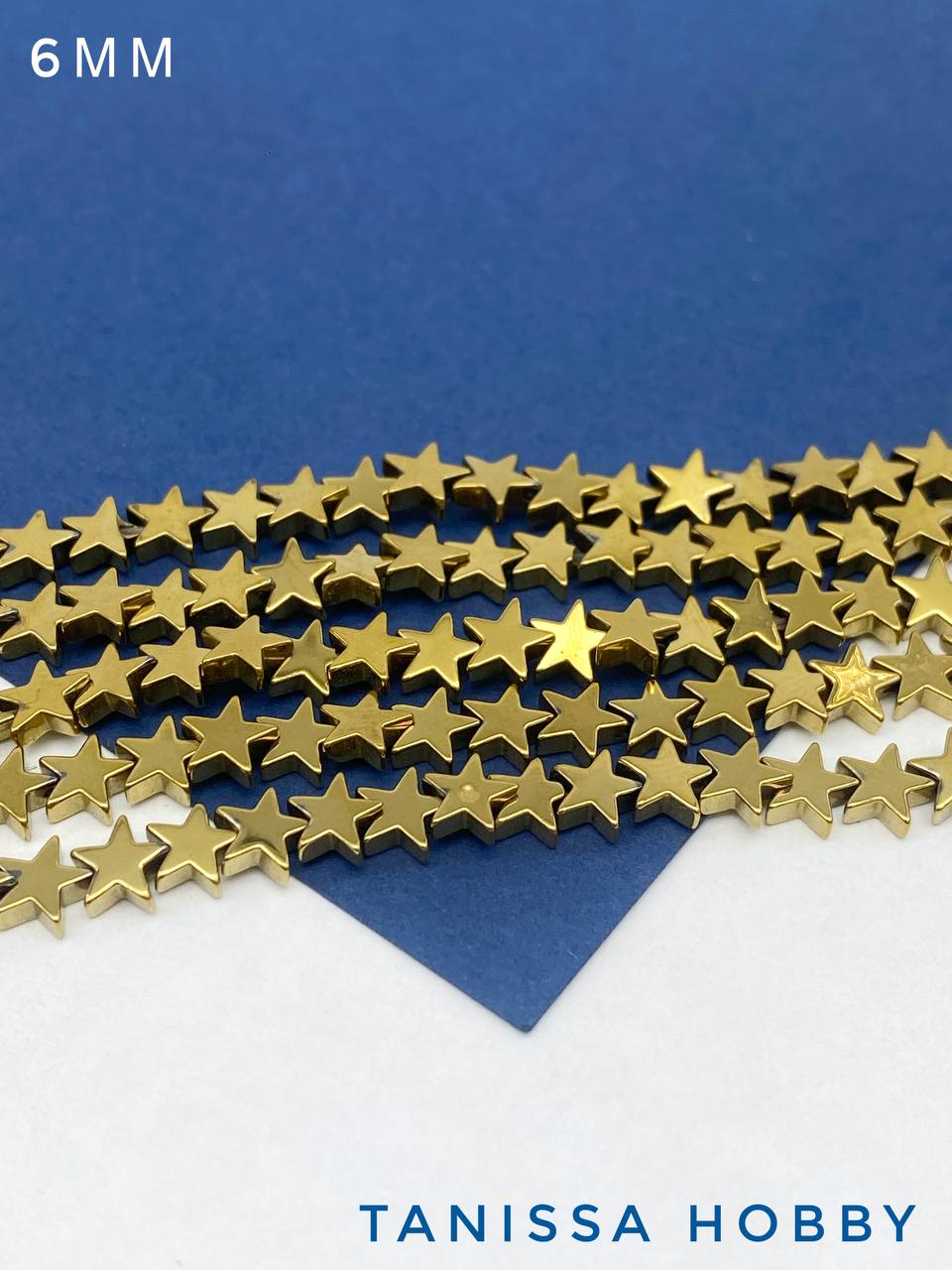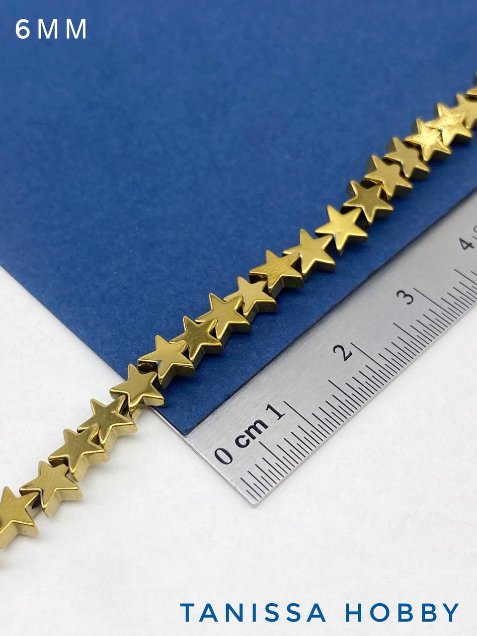 -Гематин гематит звезда 6мм, золото, Категория В, 1/2 нити, ГТ112