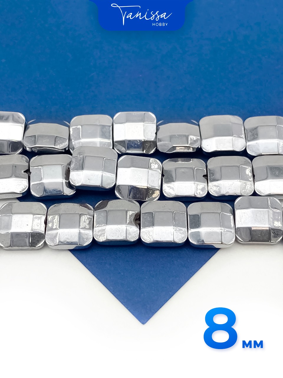 Гематин гематит бусины плоский квадрат пиксель 8мм, 1/2 нити, ГТ115