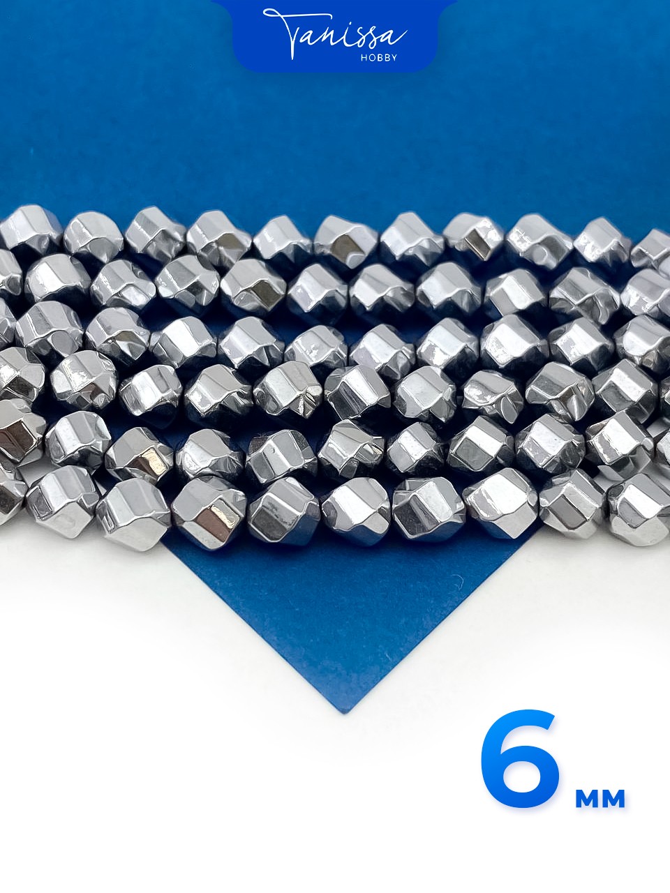 Гематин гематит бусины круглый многогранник, 6мм, нить, ГТ131