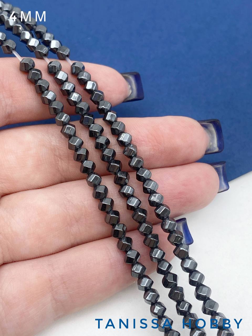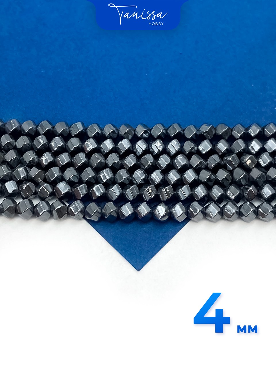 -Гематин гематит бусины круглый многогранник, 4мм, черный, нить, ГТ132