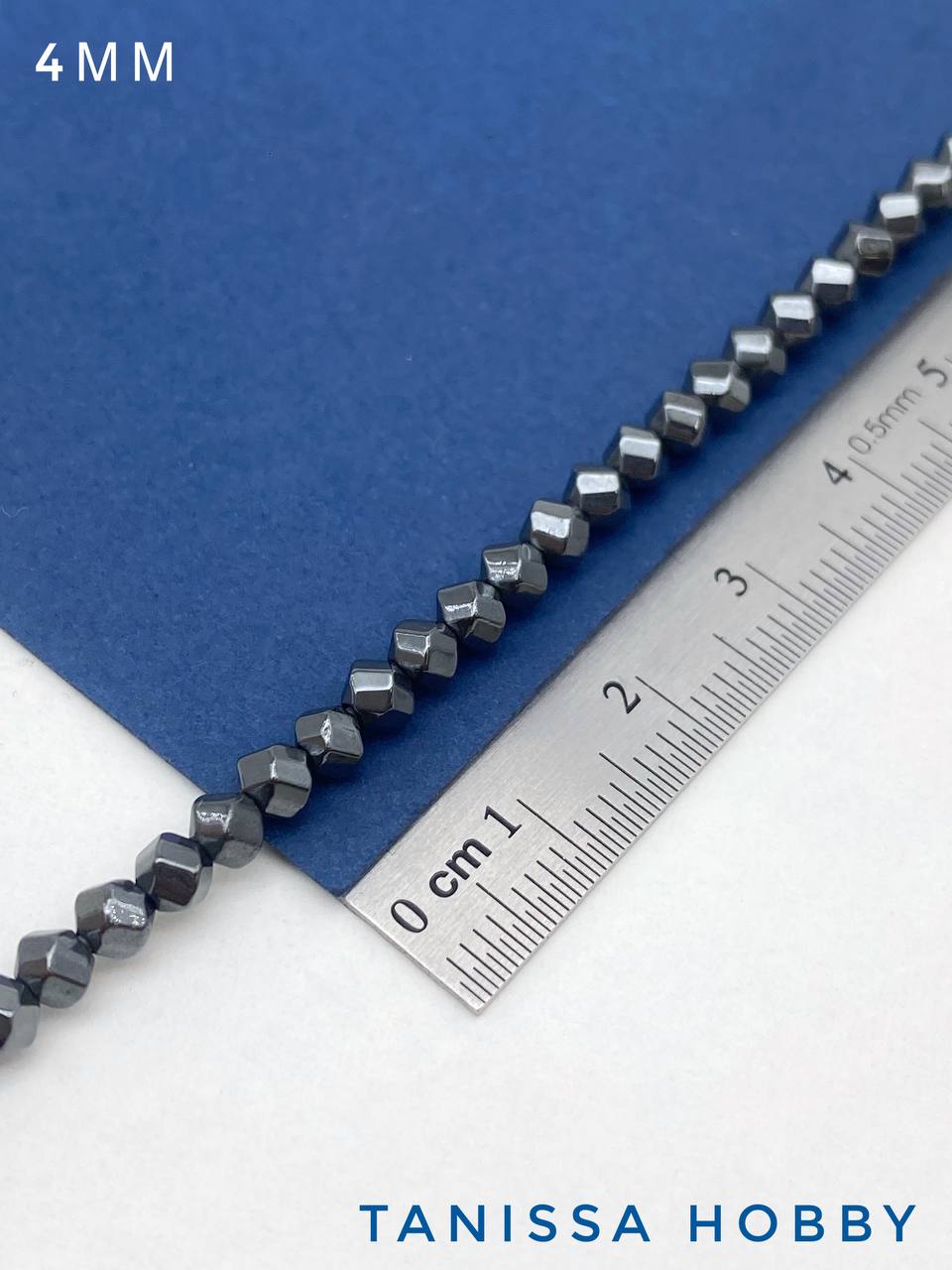 Гематин гематит бусины круглый многогранник, 4мм, черный, нить, ГТ132