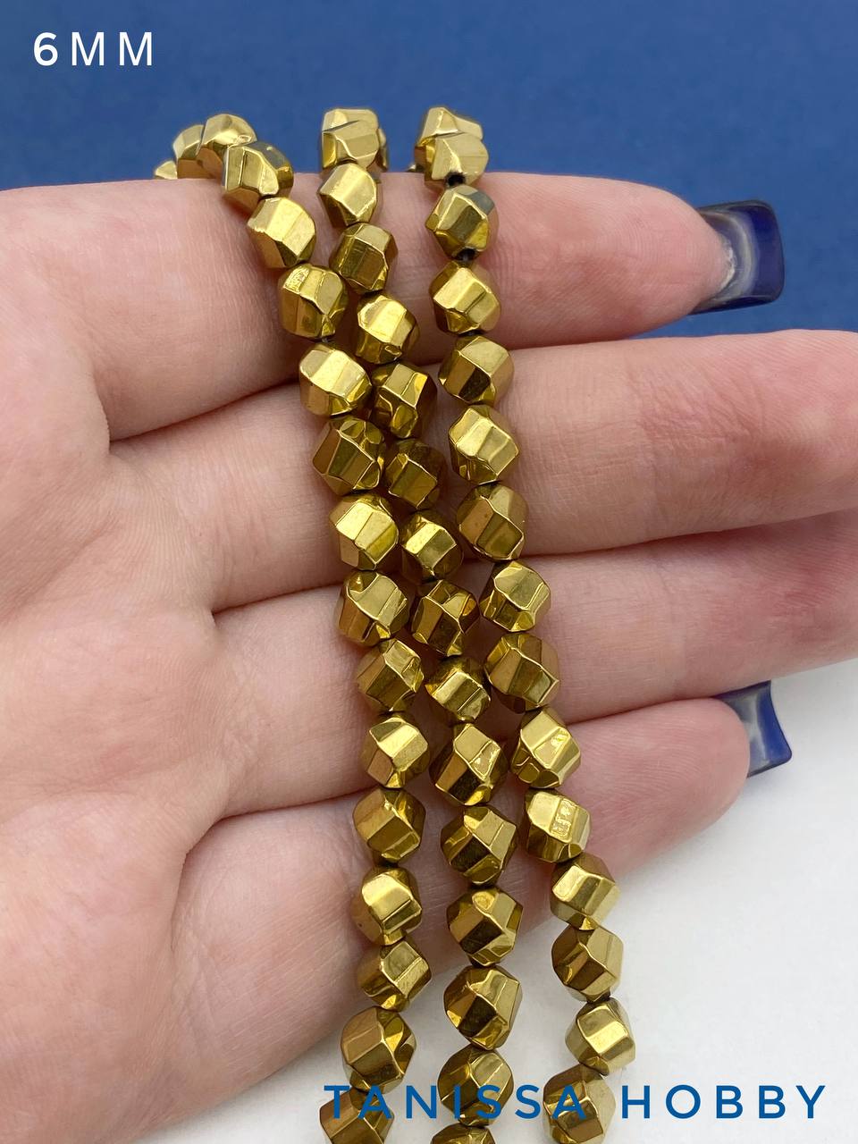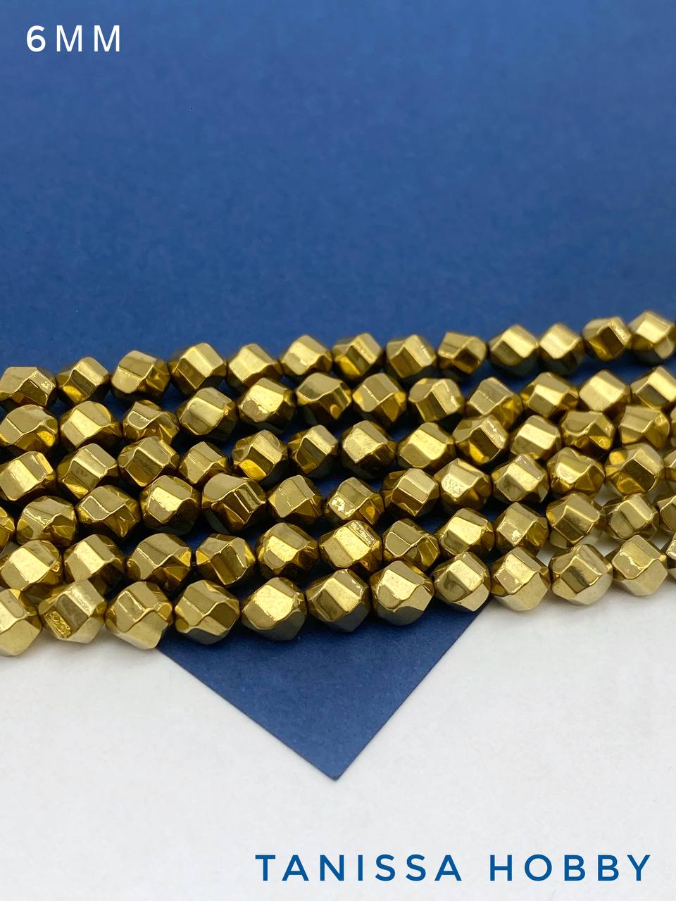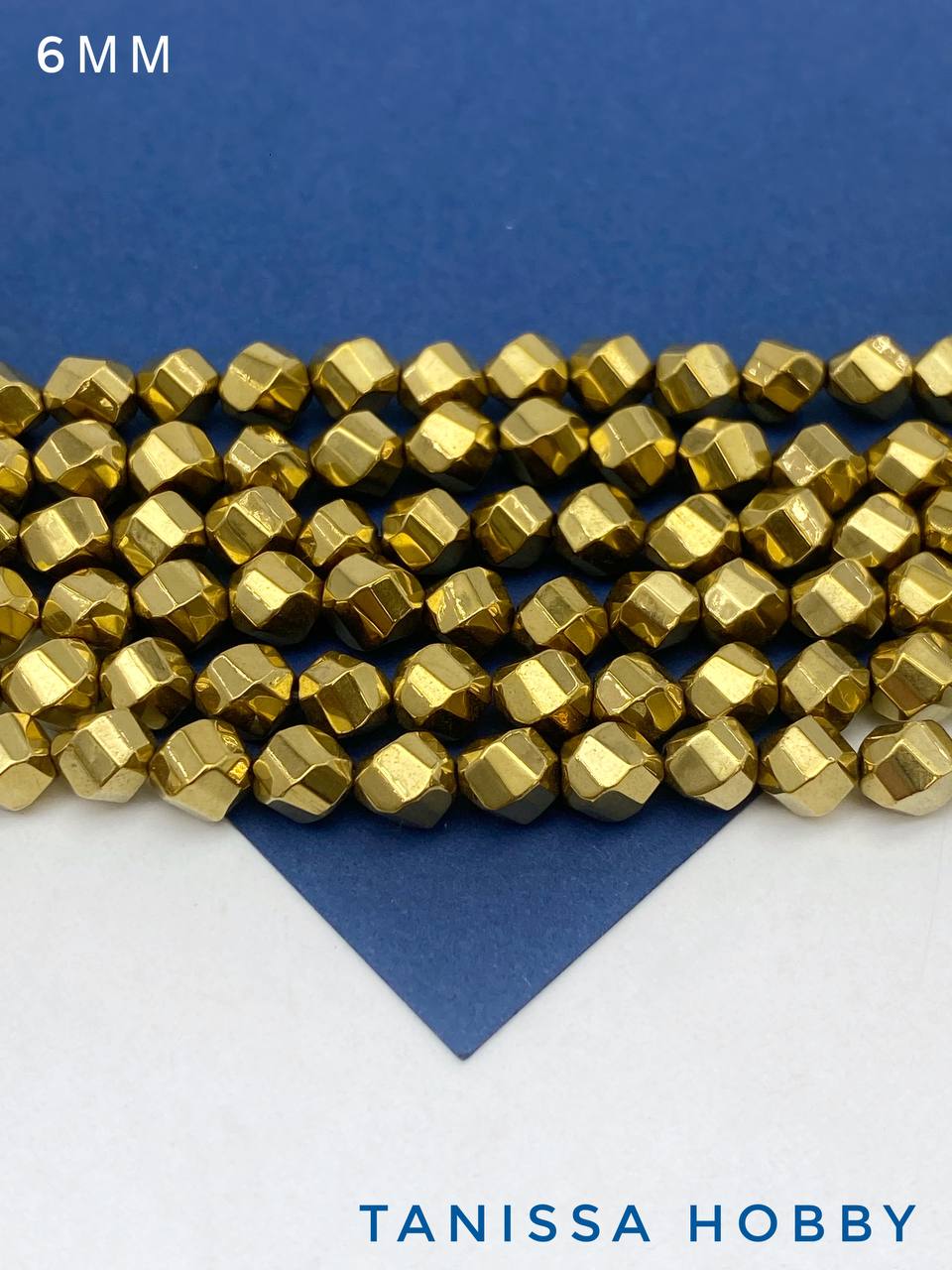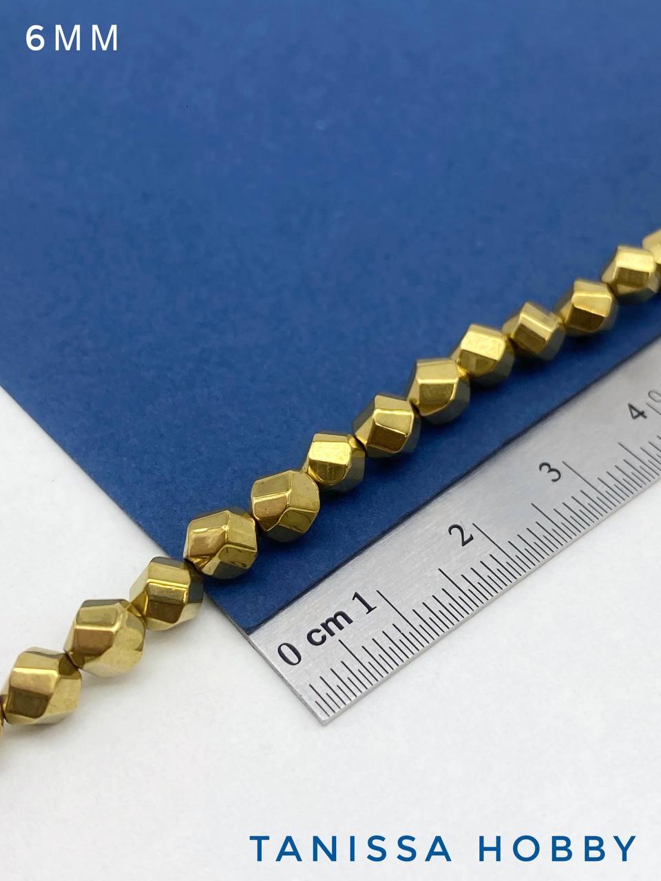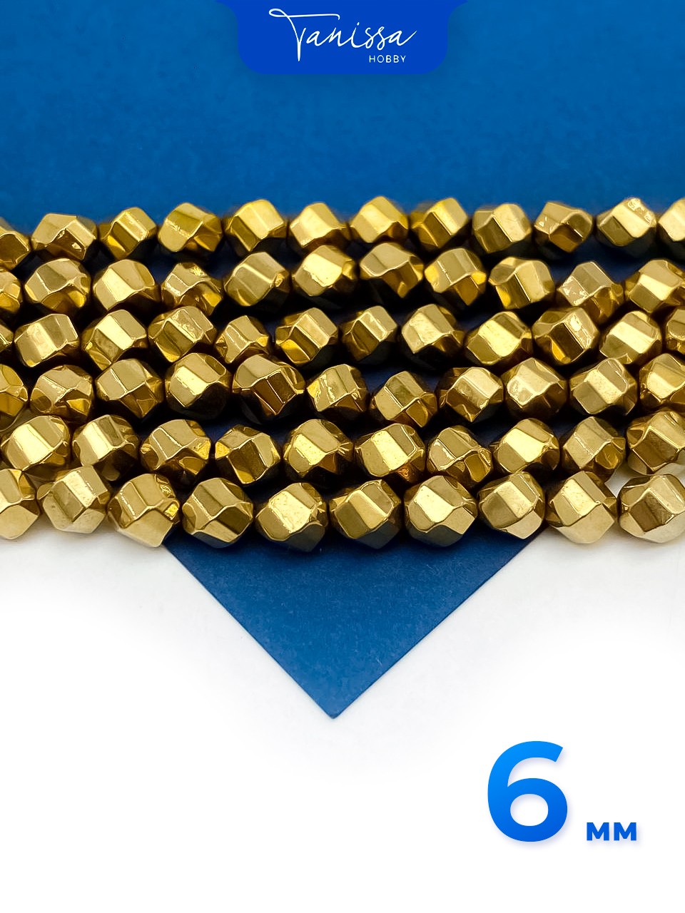 Гематин гематит бусины круглый многогранник, 6мм, золото, нить, ГТ135
