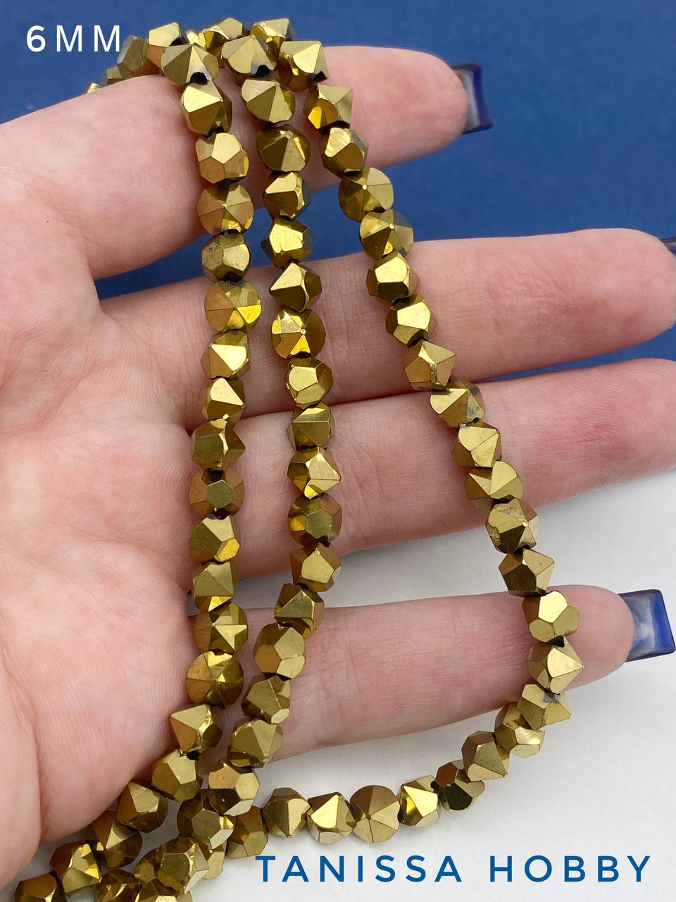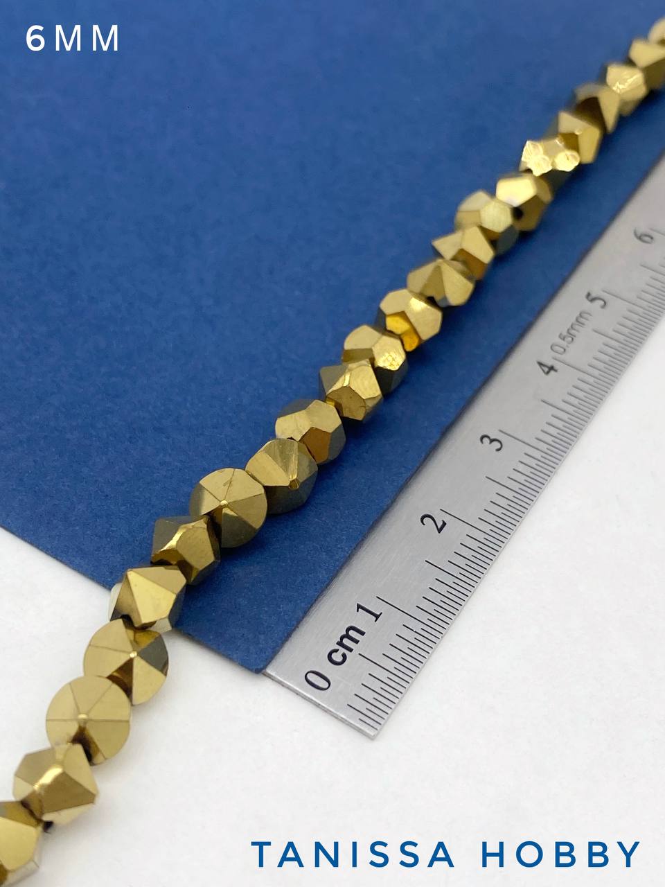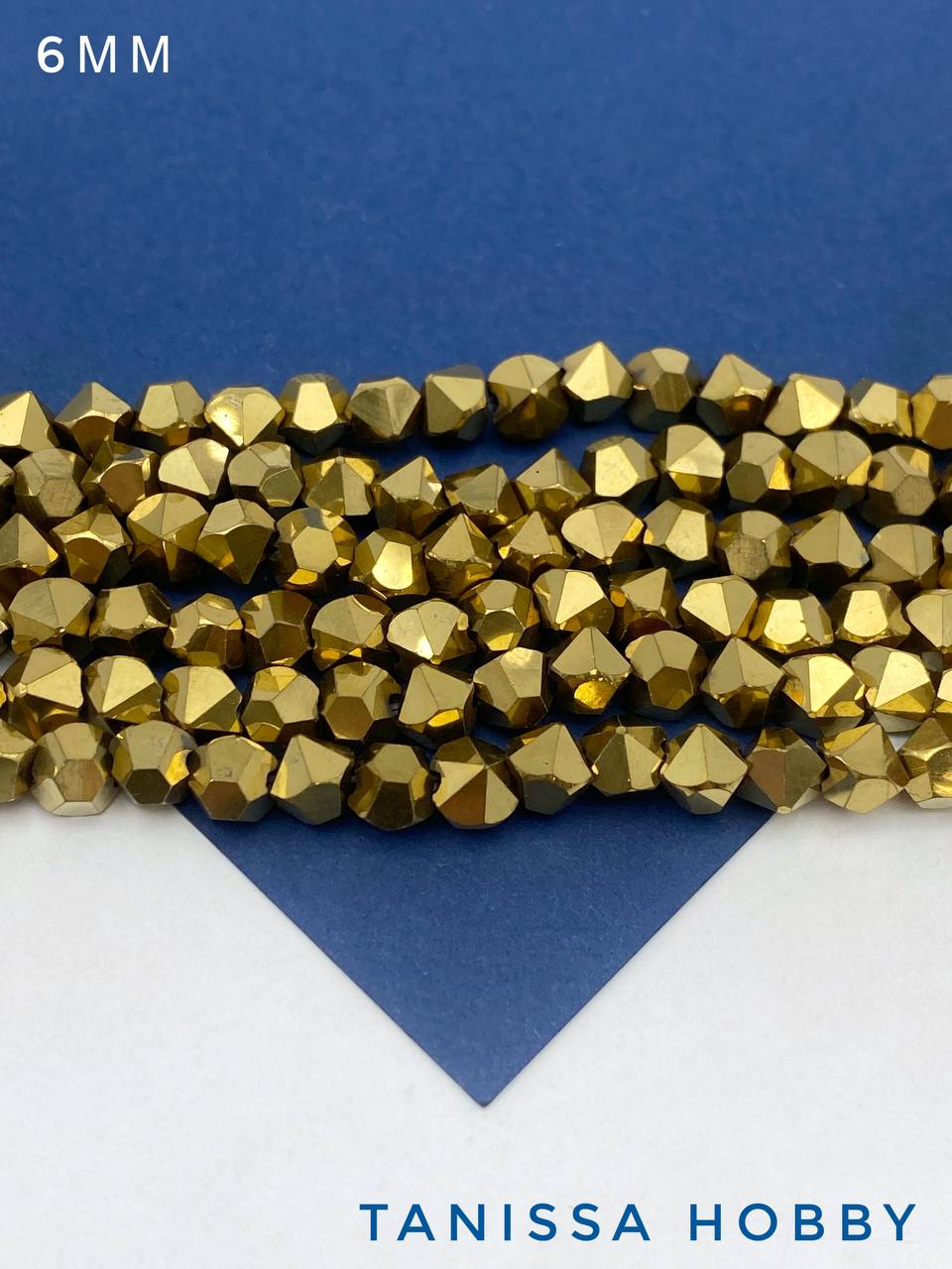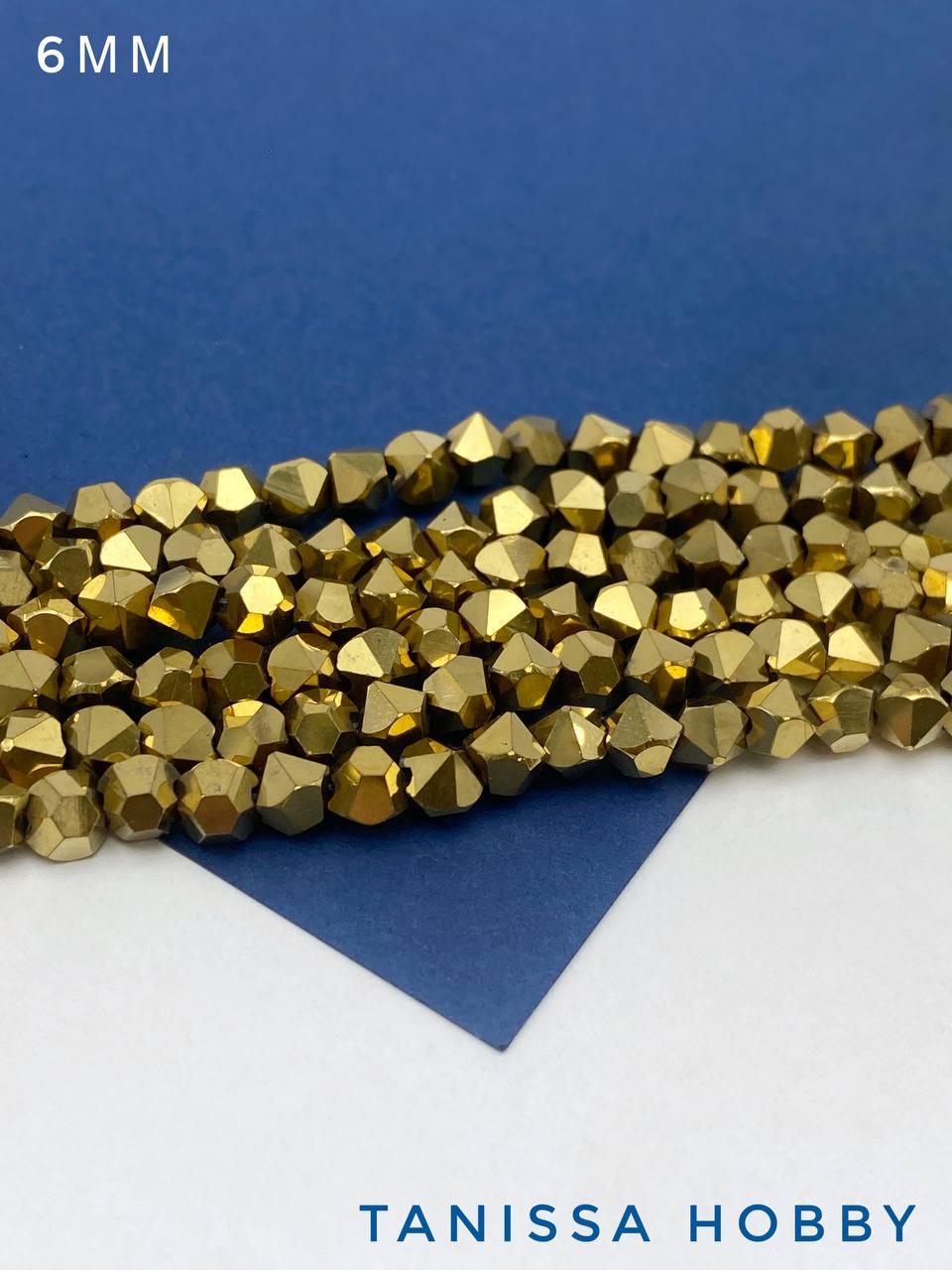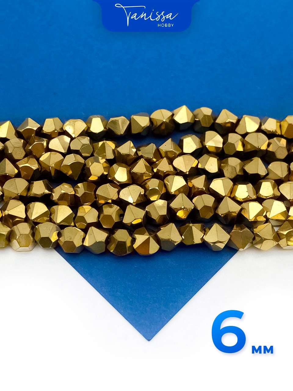 Гематин гематит бусины алмаз многогранник, 6мм, золото, нить, ГТ137