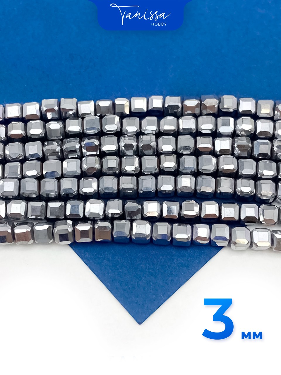 Гематин гематит бусины квадратные, куб, 3мм, нить, ГТ138