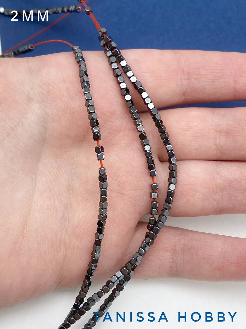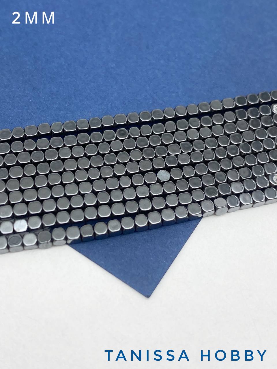 • Гематин гематит бусины квадратные куб огранка круг 2мм, черный, нить, ГТ144