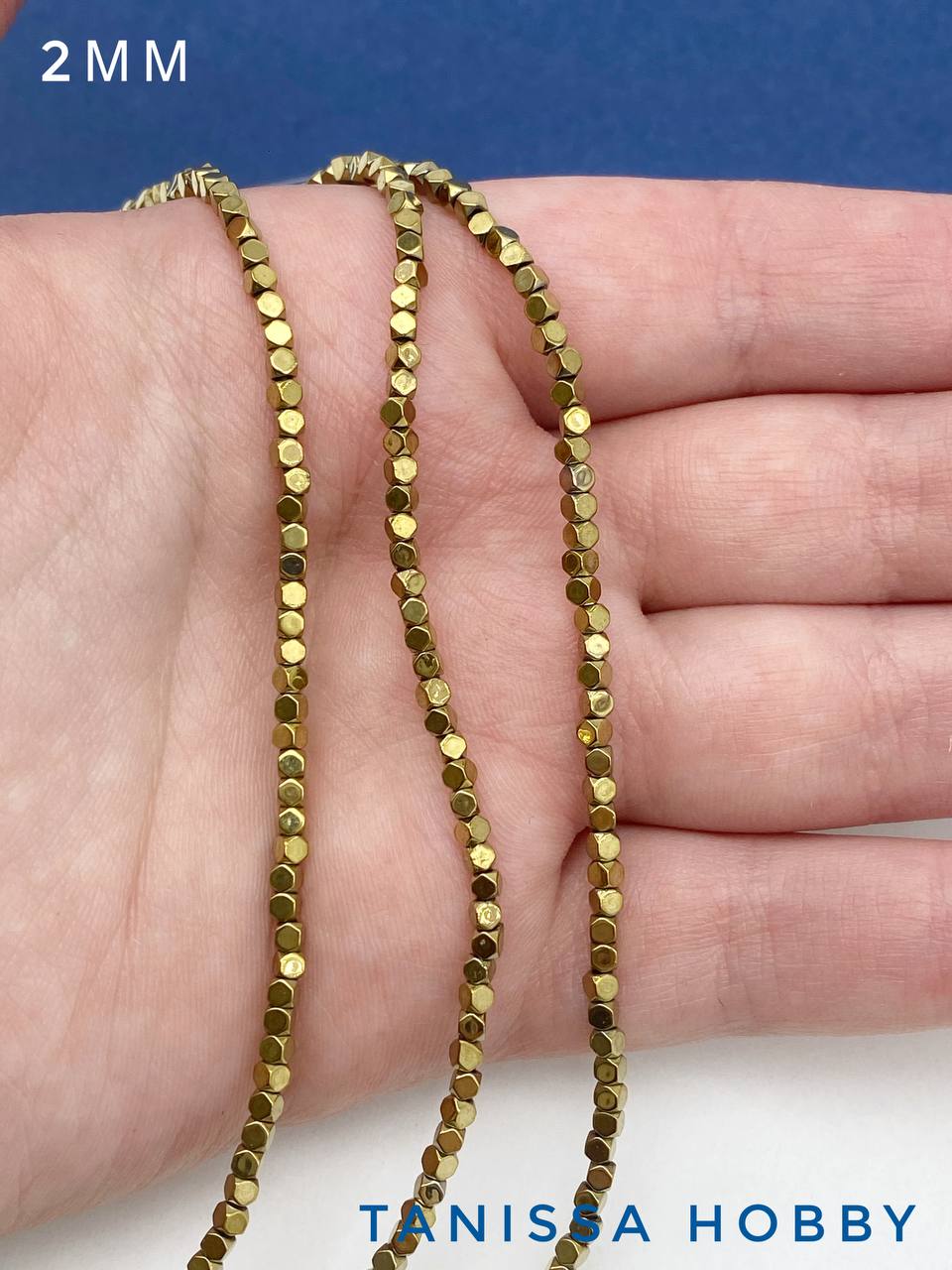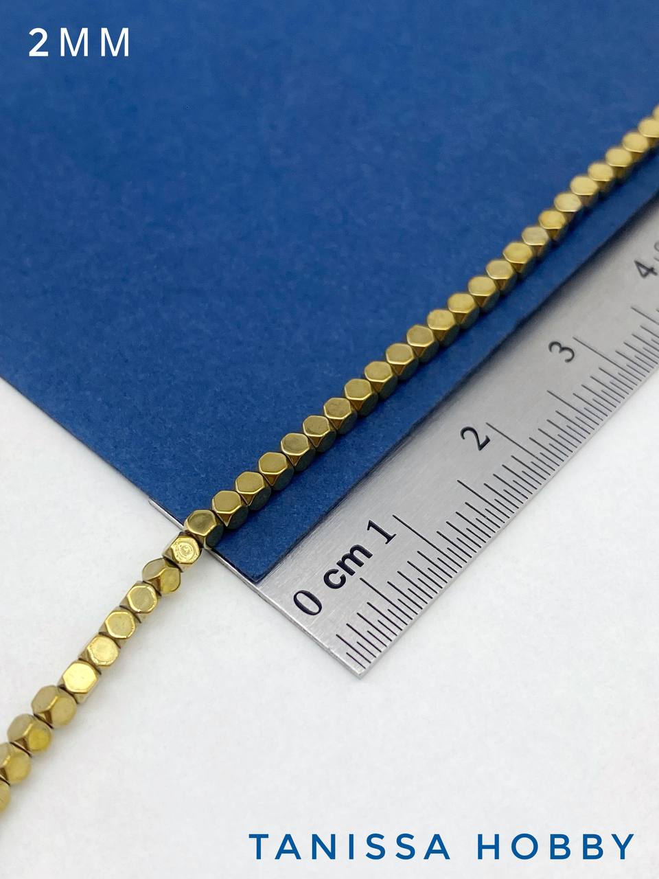 -Гематин гематит бусины квадратные куб огранка круг 2мм, золото, нить, ГТ145