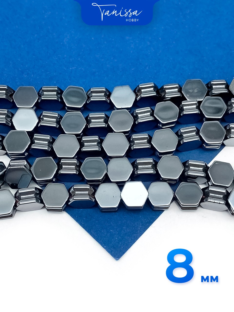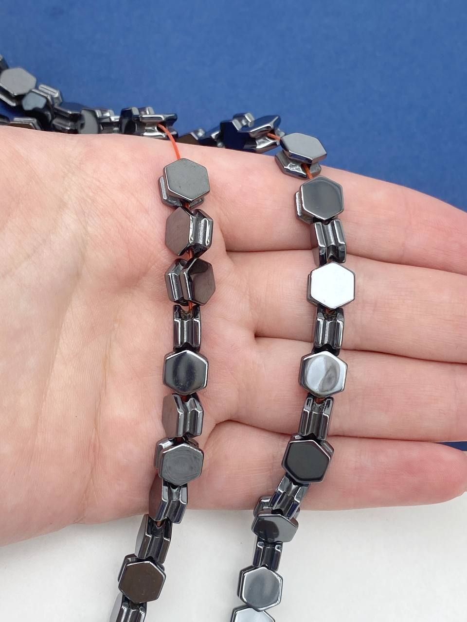 Гематин гематит бусины шестиугольник 8мм, 1/2 нити, ГТ148