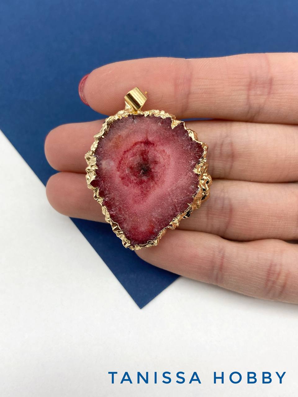 • Подвеска друза агата, фуксия фиолетовый, позолота, Б303