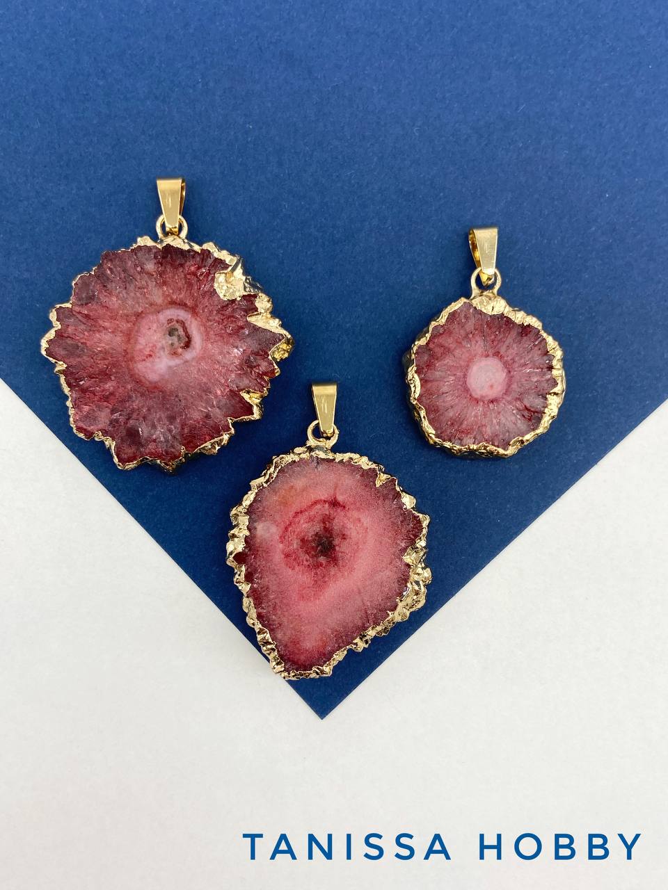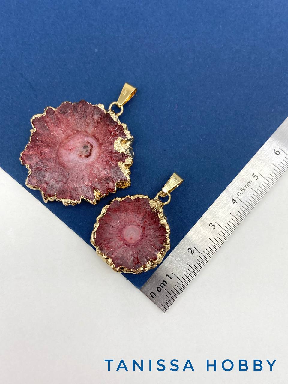 • Подвеска друза кварца, синий, позолота, Б306