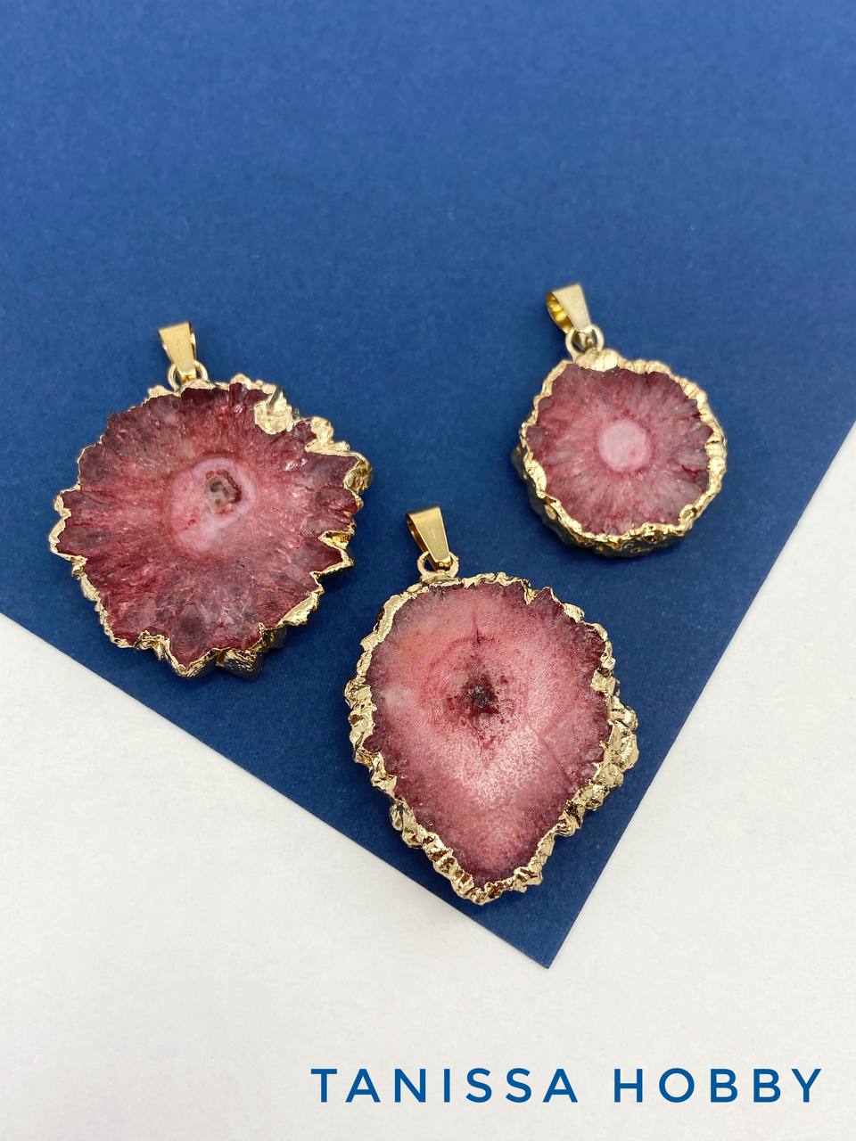 • Подвеска друза кварца, розовый, позолота, Б305