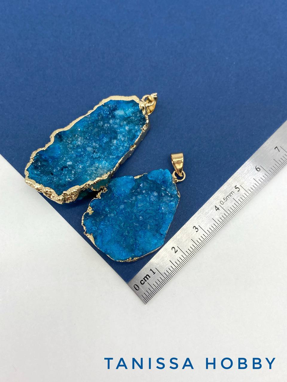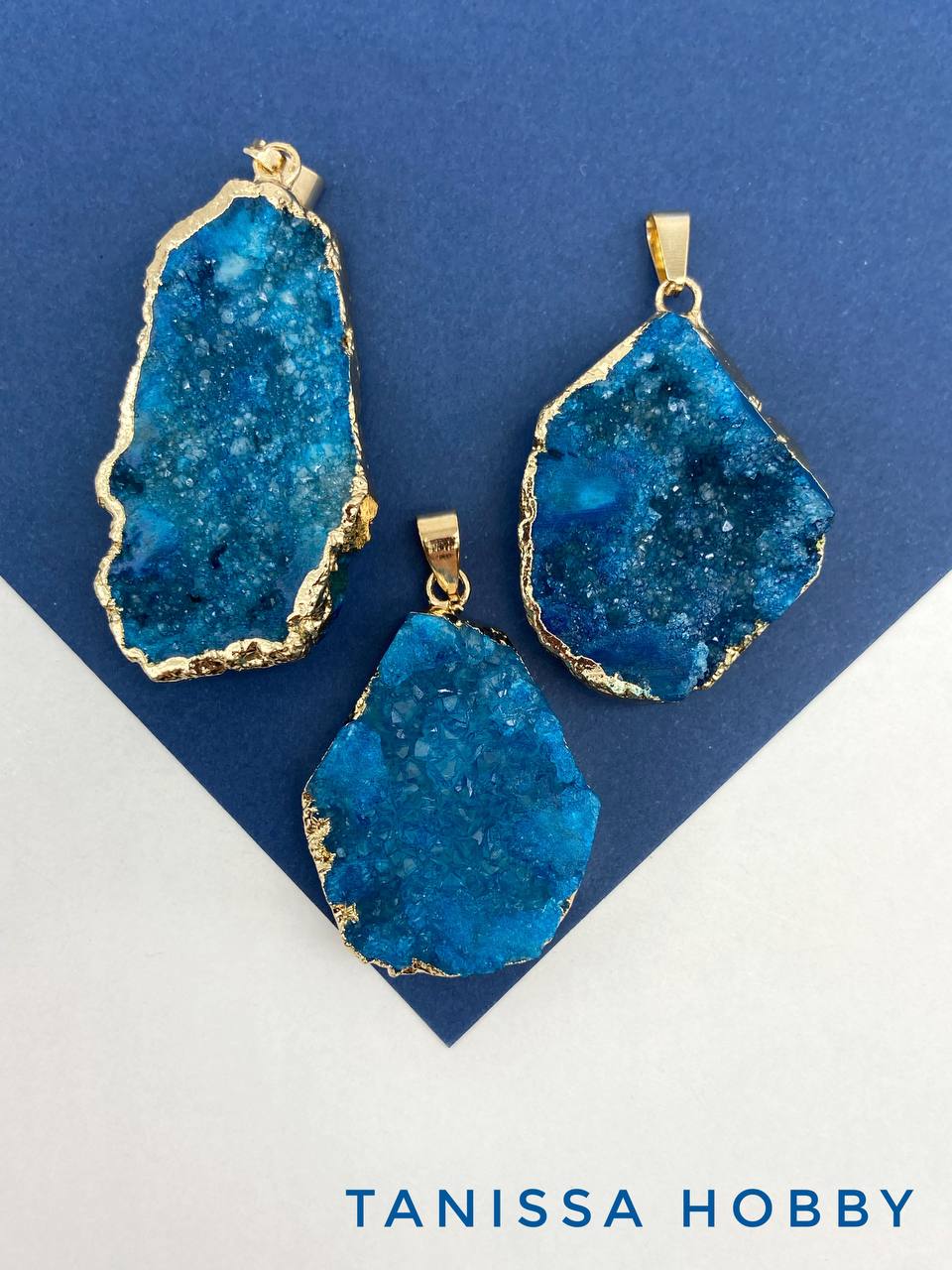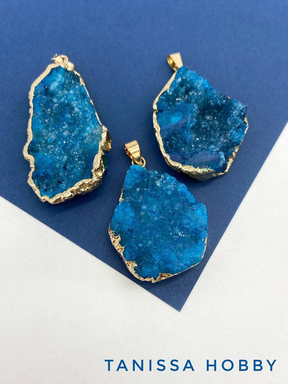 Подвеска друза кварца, синий, позолота, Б306