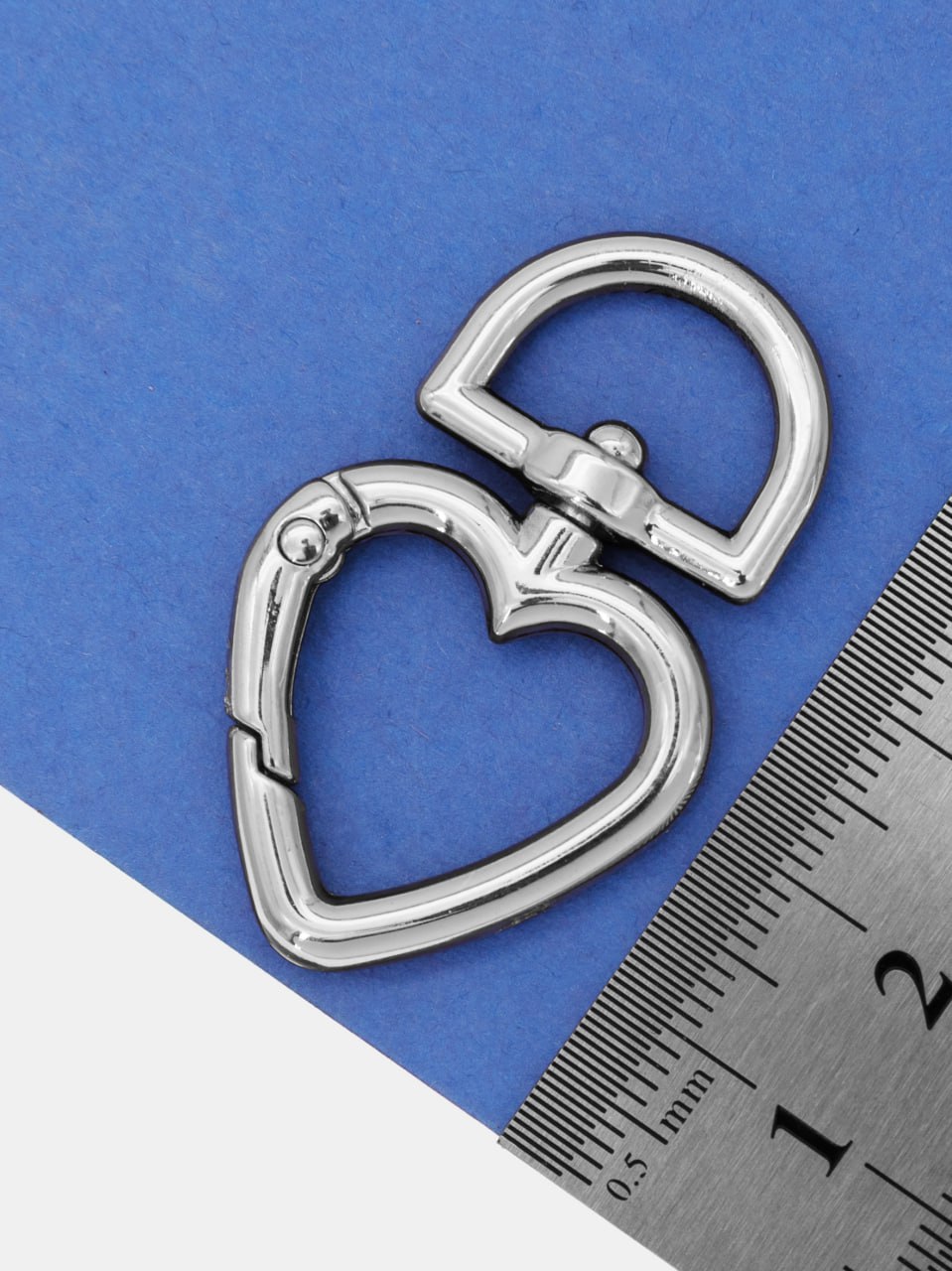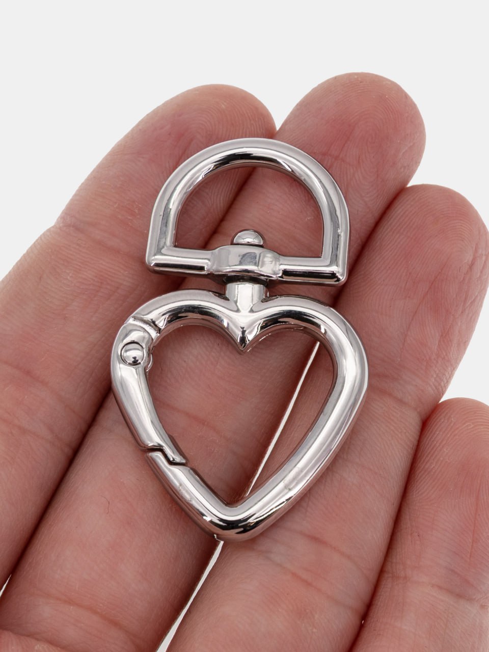 • Карабин сердце, основа для брелка, родий, КР004