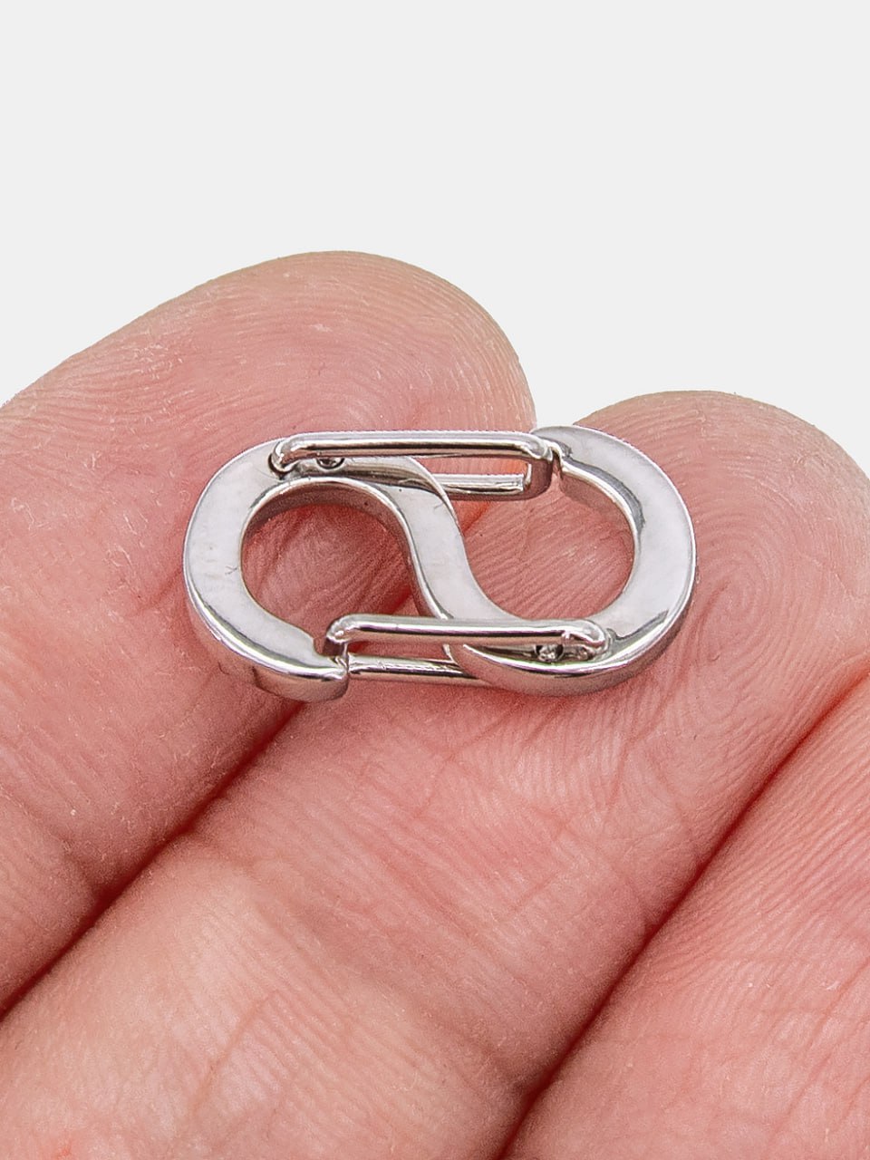 Карабин замок двойной, бесконечность, 23х12мм, родий, К326