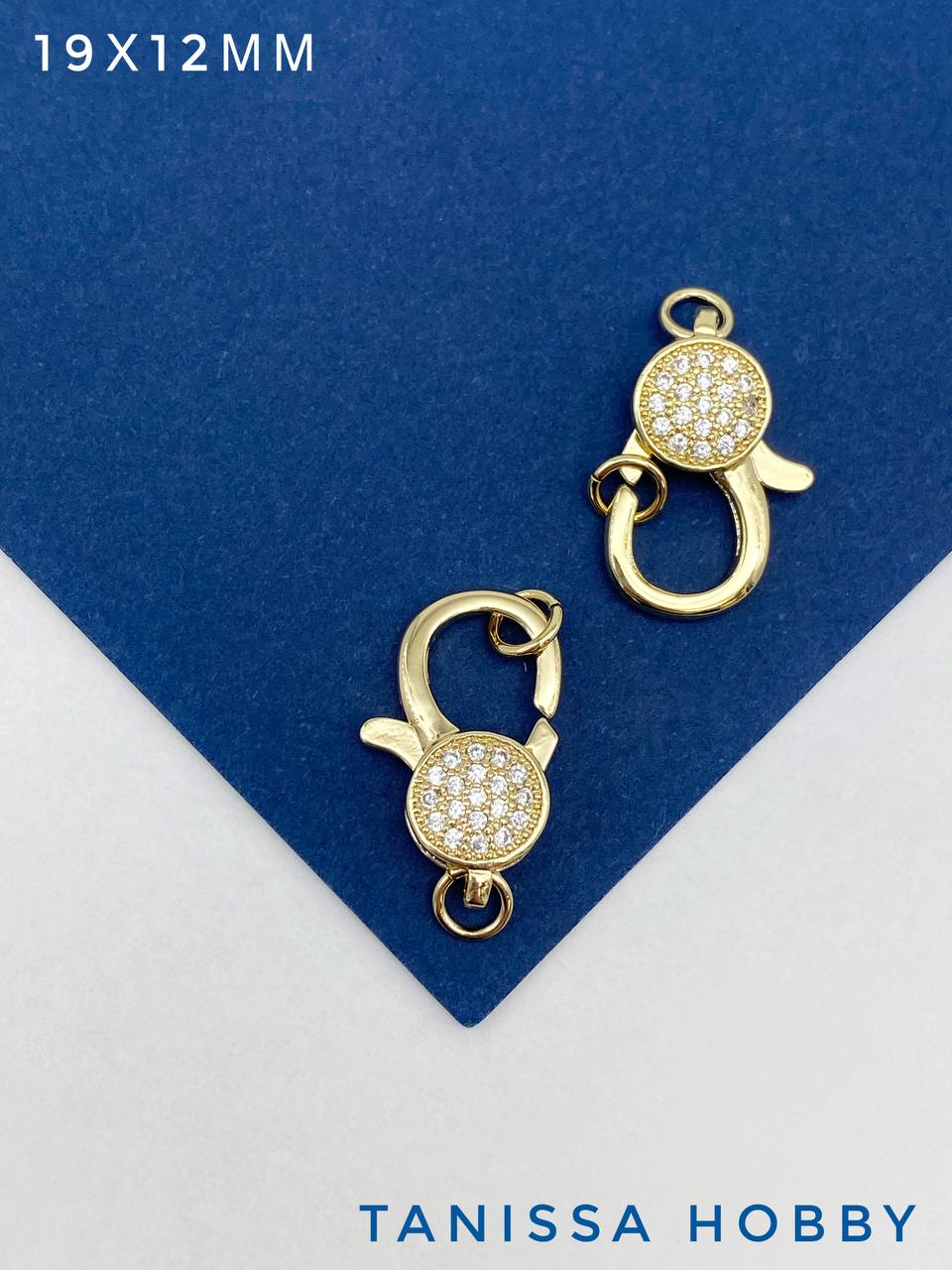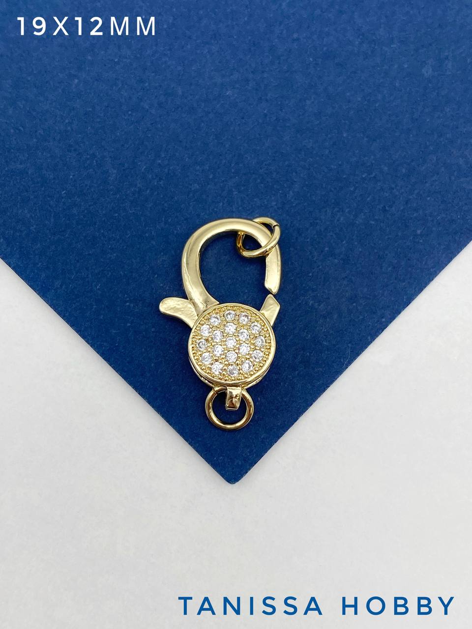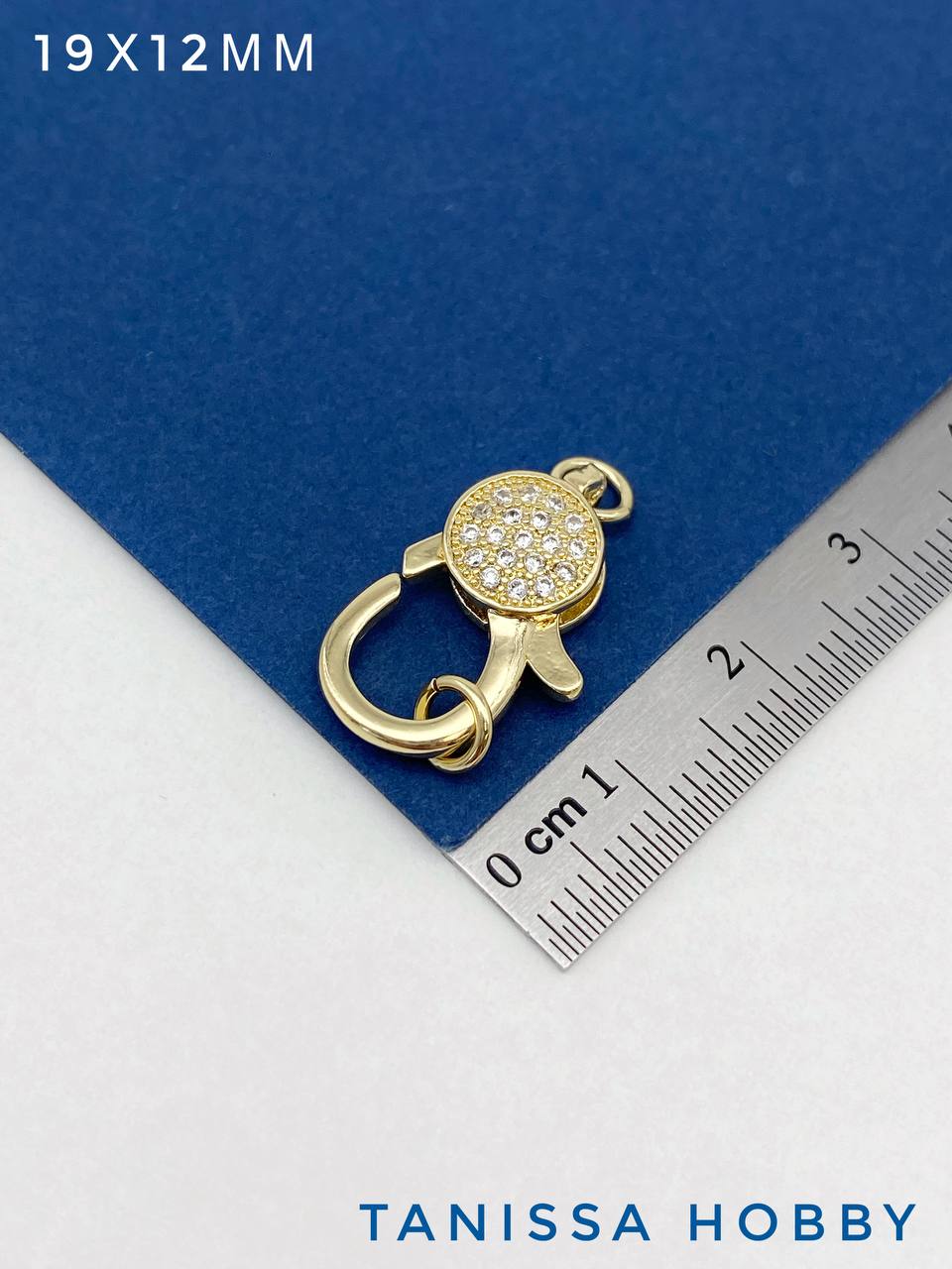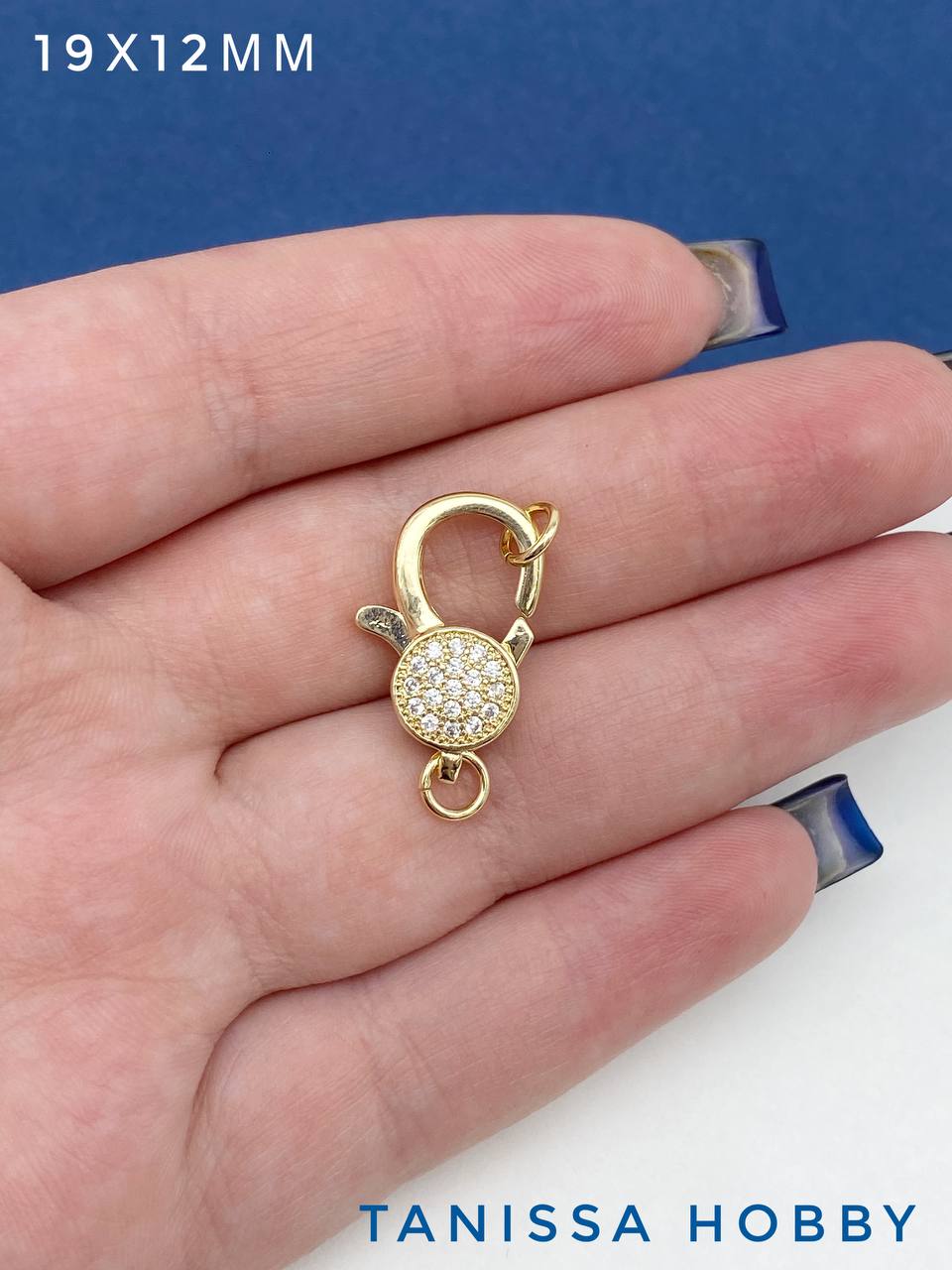 Замок карабин лобстер 19х12мм с фианитами, позолота, Р021