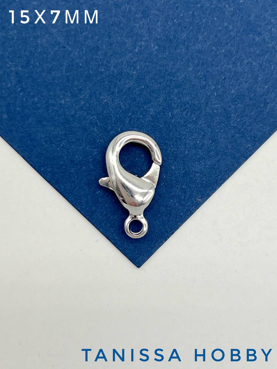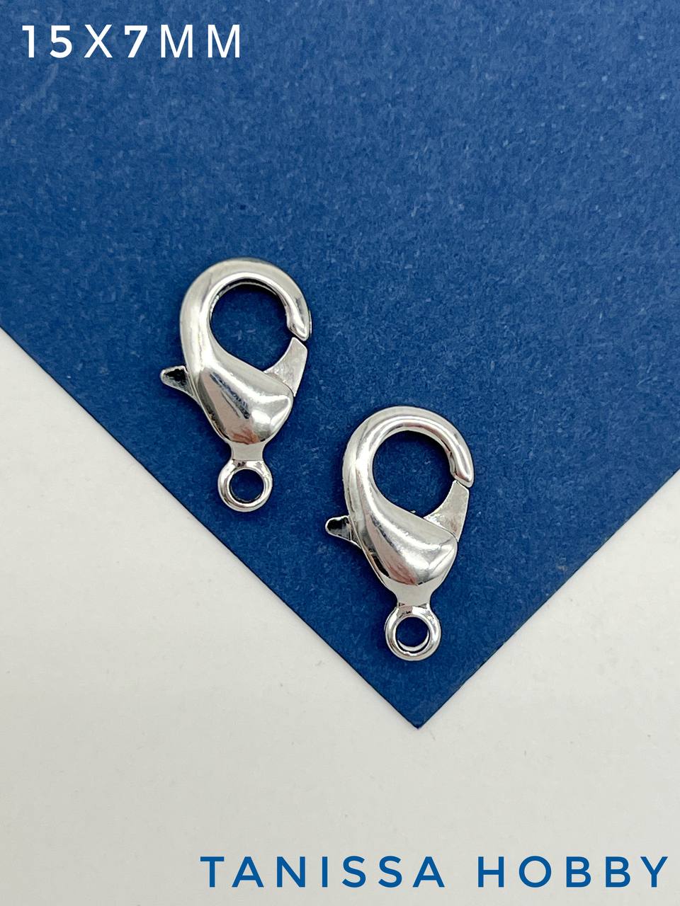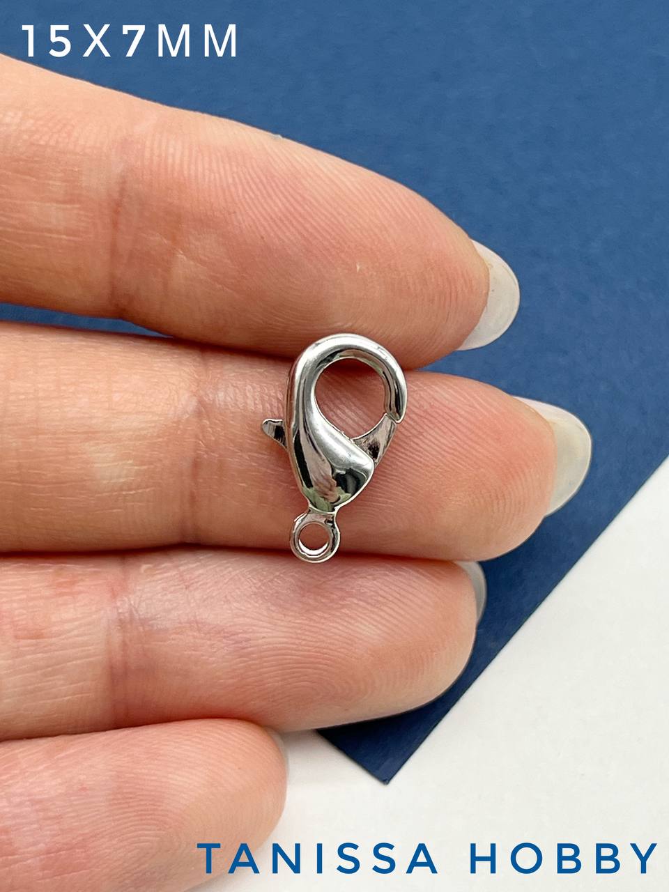 Карабин лобстер – это замок для бижутерии, оснащенный крошечной пружиной в его основании. Нижняя часть такого карабина оснащается колечком для застегивания браслетов, кулонов, бус и колье. Карабины лобстеры чаще всего используют для создания украшений на шею.