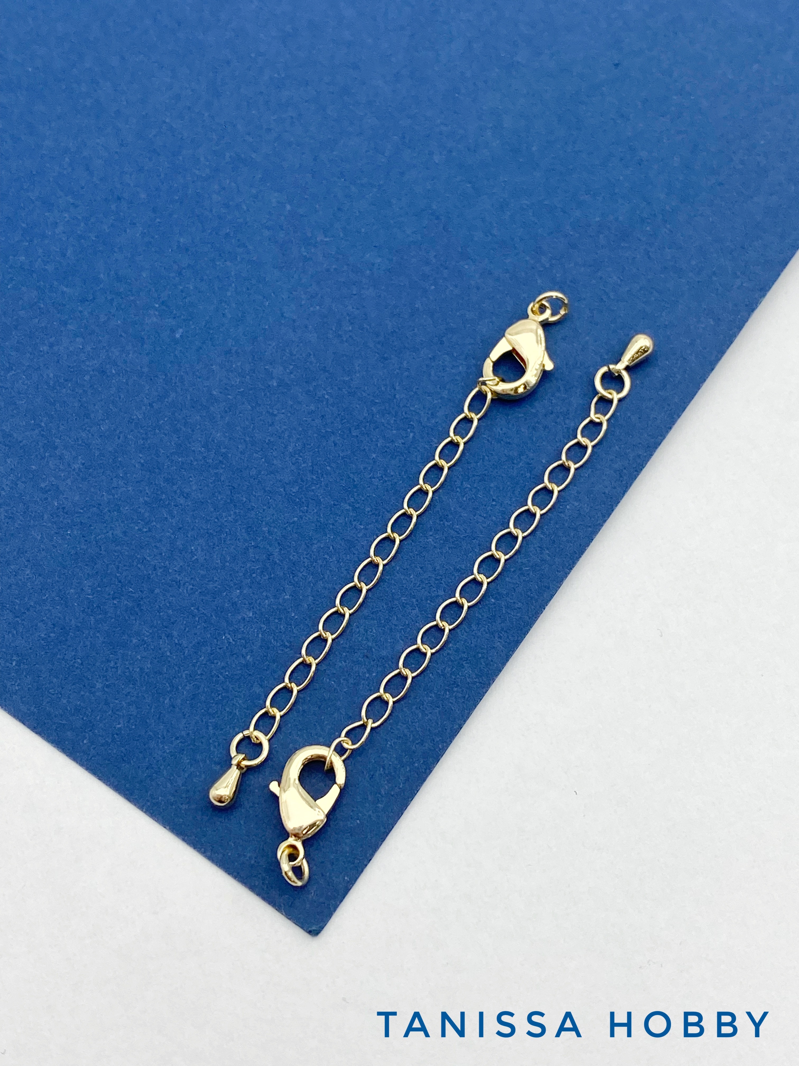 • Карабин замок лобстер 10х5мм с цепочкой удлинения, сталь, позолота, Ш319