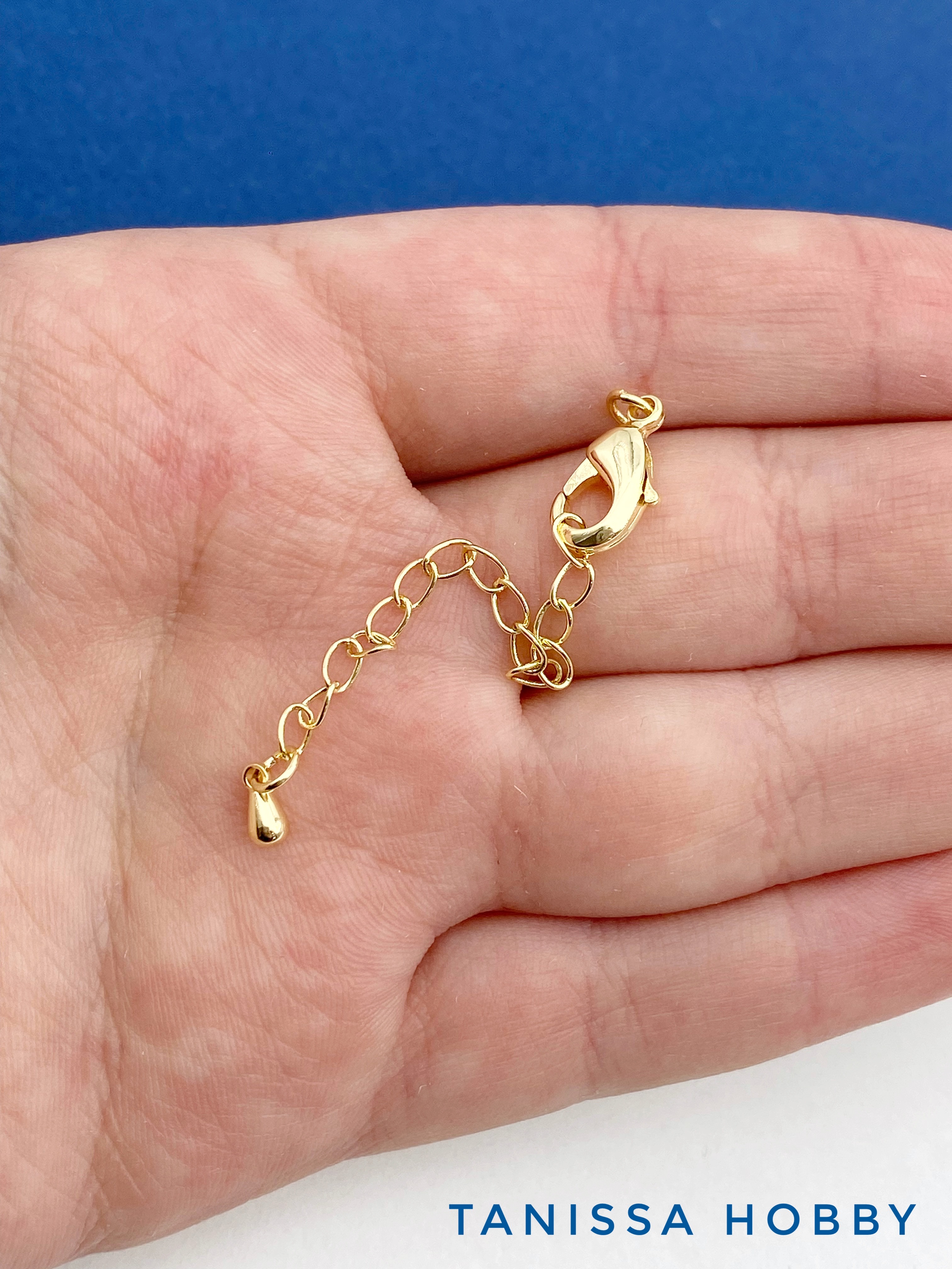 Замок лобстер 10х5мм с цепочкой удлинения, Категория В, позолота, К321Б